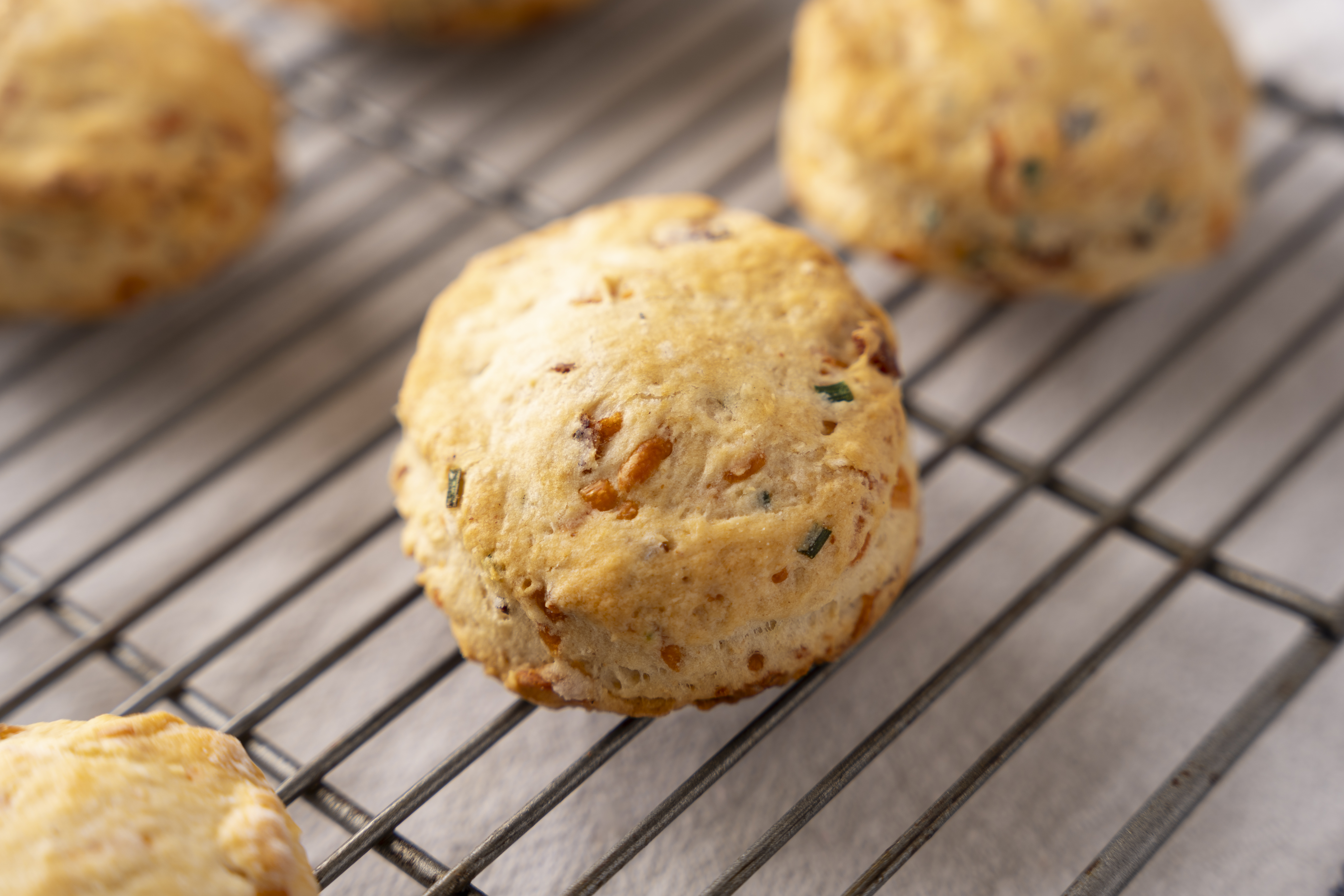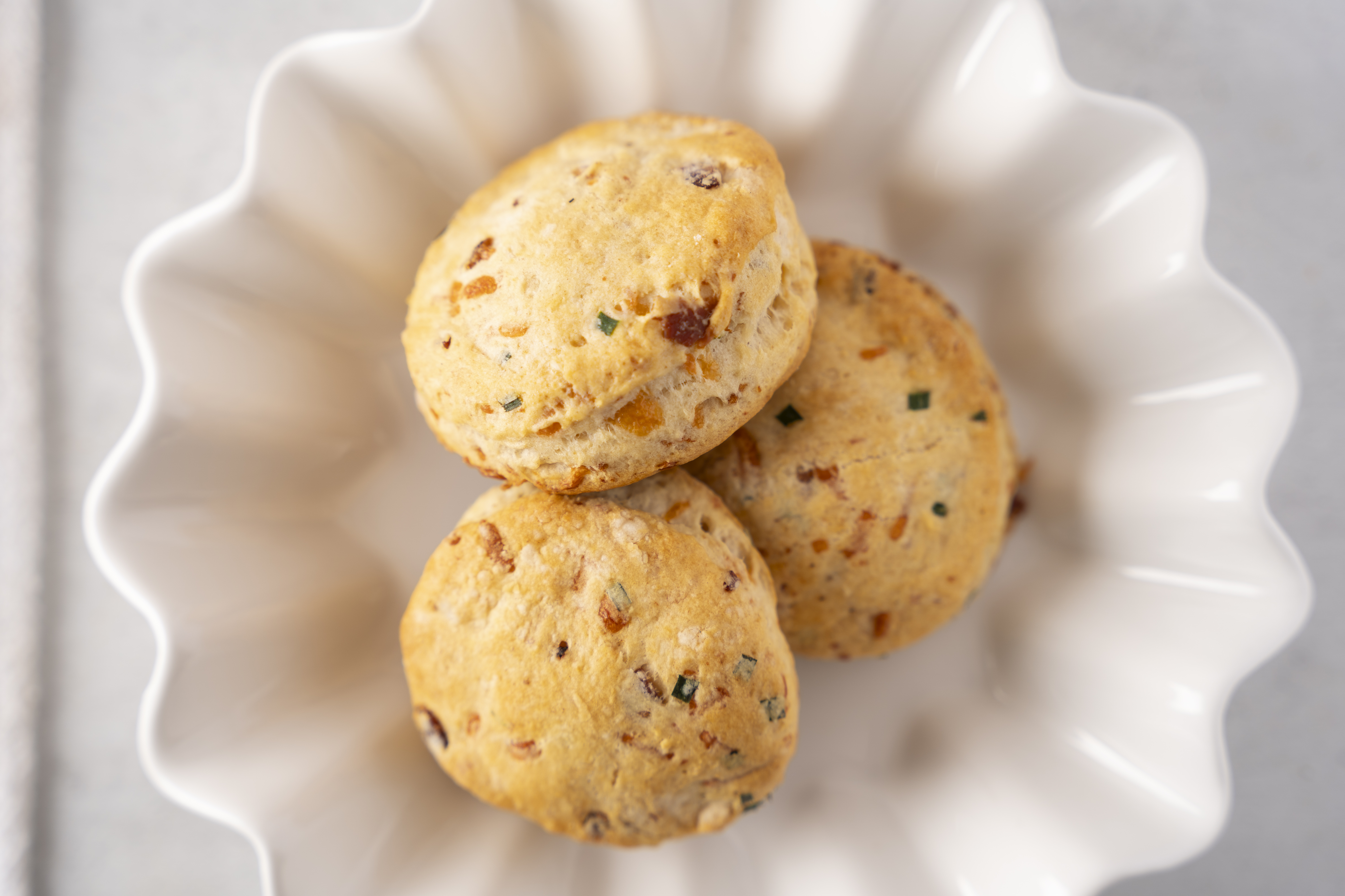Skip the flowers or the fancy jewelry, gift your honey bun with some Baked-With-Love Biscuits instead! Beautifully golden on the outside and filled with phenomenal flavors from chives, cheese, and bacon within, the love of your life won't second guess your affection for them after you make these. Perfect alongside a lavishly romantic dinner, show them how much you really care with these Baked-With-Love Biscuits!