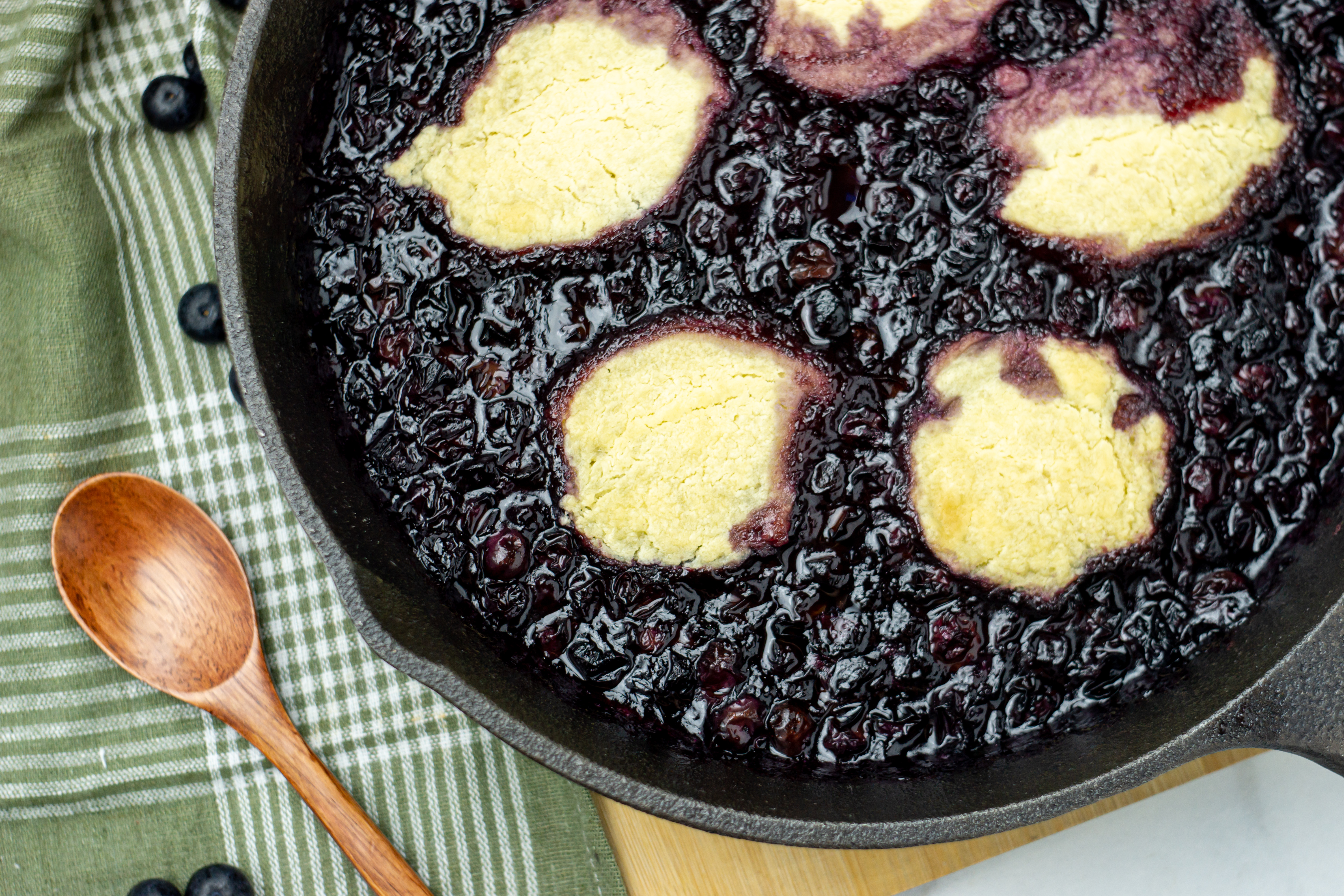 There isn't a treat that better embodies the spirit of summer than this Blueberry Skillet Cobbler. Just look at it: a sapphire sea of sweetness, cooked until jammy and syrupy, with a simple, yet buttery and tasty, biscuit topping. Grab the ice cream, find your place on the porch, and let summer whisk your imagination away while Blueberry Skillet Cobbler dazzles your tastebuds. Yes indeed, it's going to be a great day!