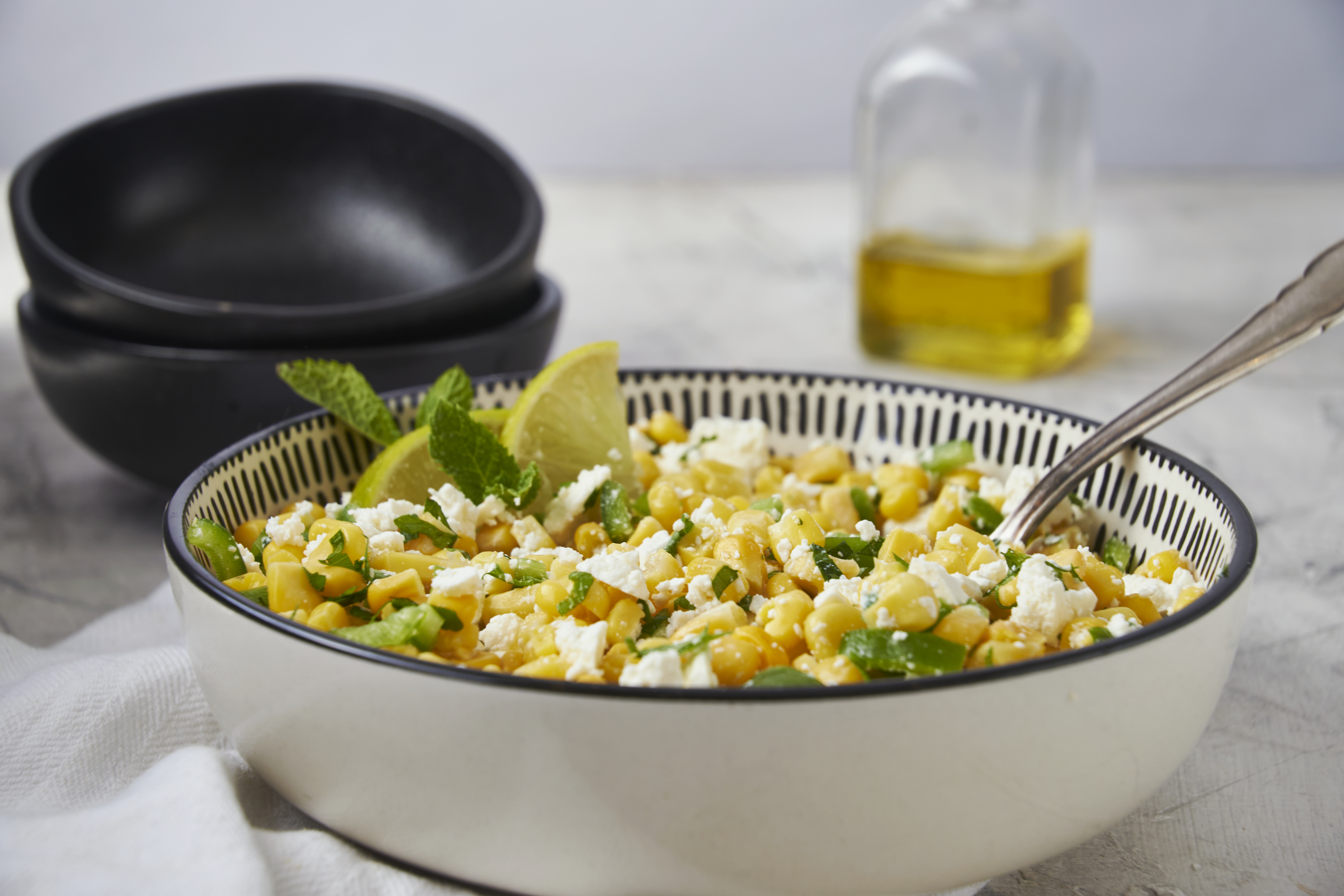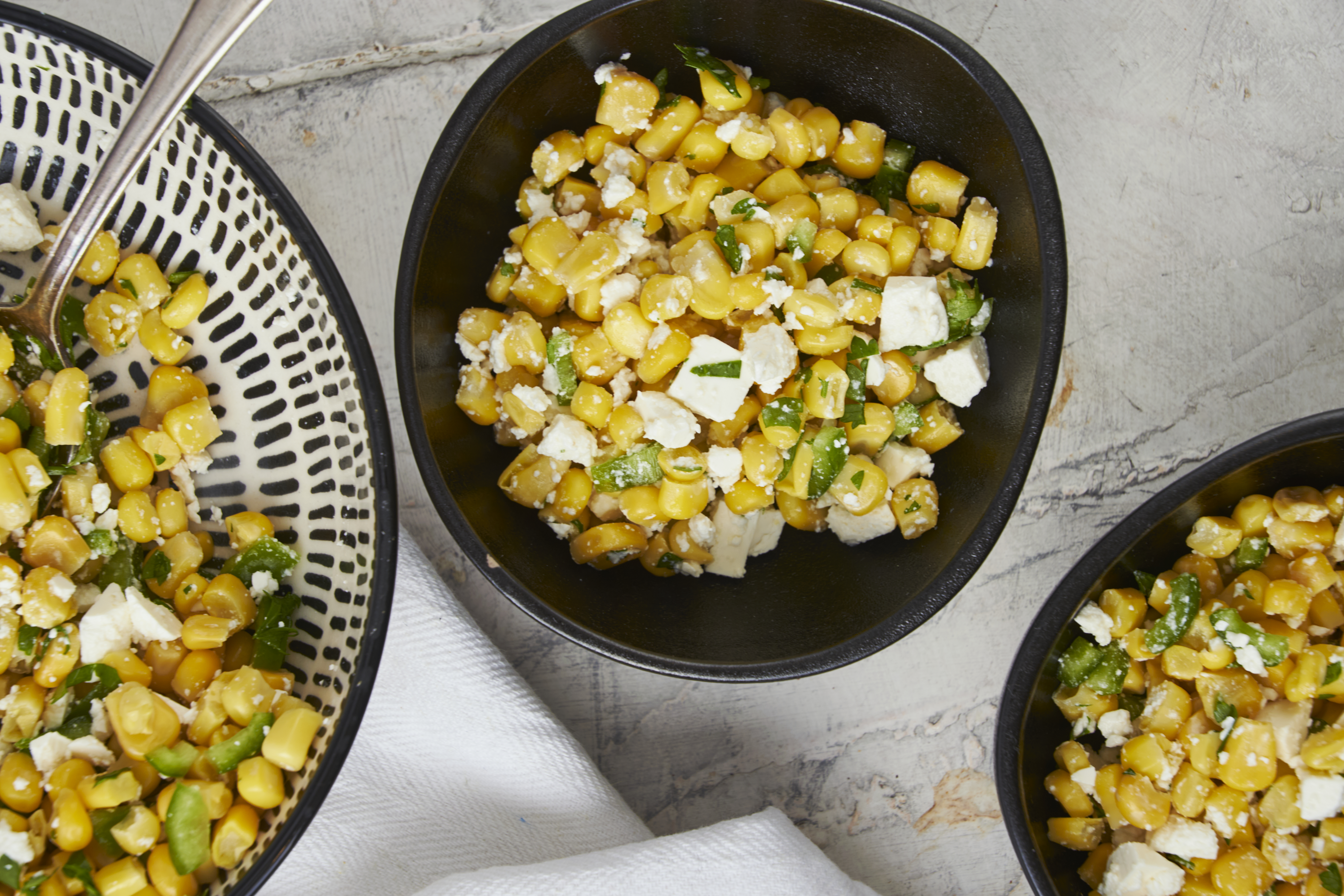 Add something fresh and flirty to your next meal! Corn Feta Salad will captivate your palate in a whole new way. Fresh-from-the-ear sweet corn is dressed to impress with some crumbled feta cheese, plus jalapeño to spice things up a bit, and a delightful rumba of flavor from your favorites like parsley, mint, flaky sea salt, and fresh lime juice. With a drizzling of olive oil, all the tastes of Corn Feta Salad join into an exciting new way to serve a side dish. Fresh has never been so attractive!