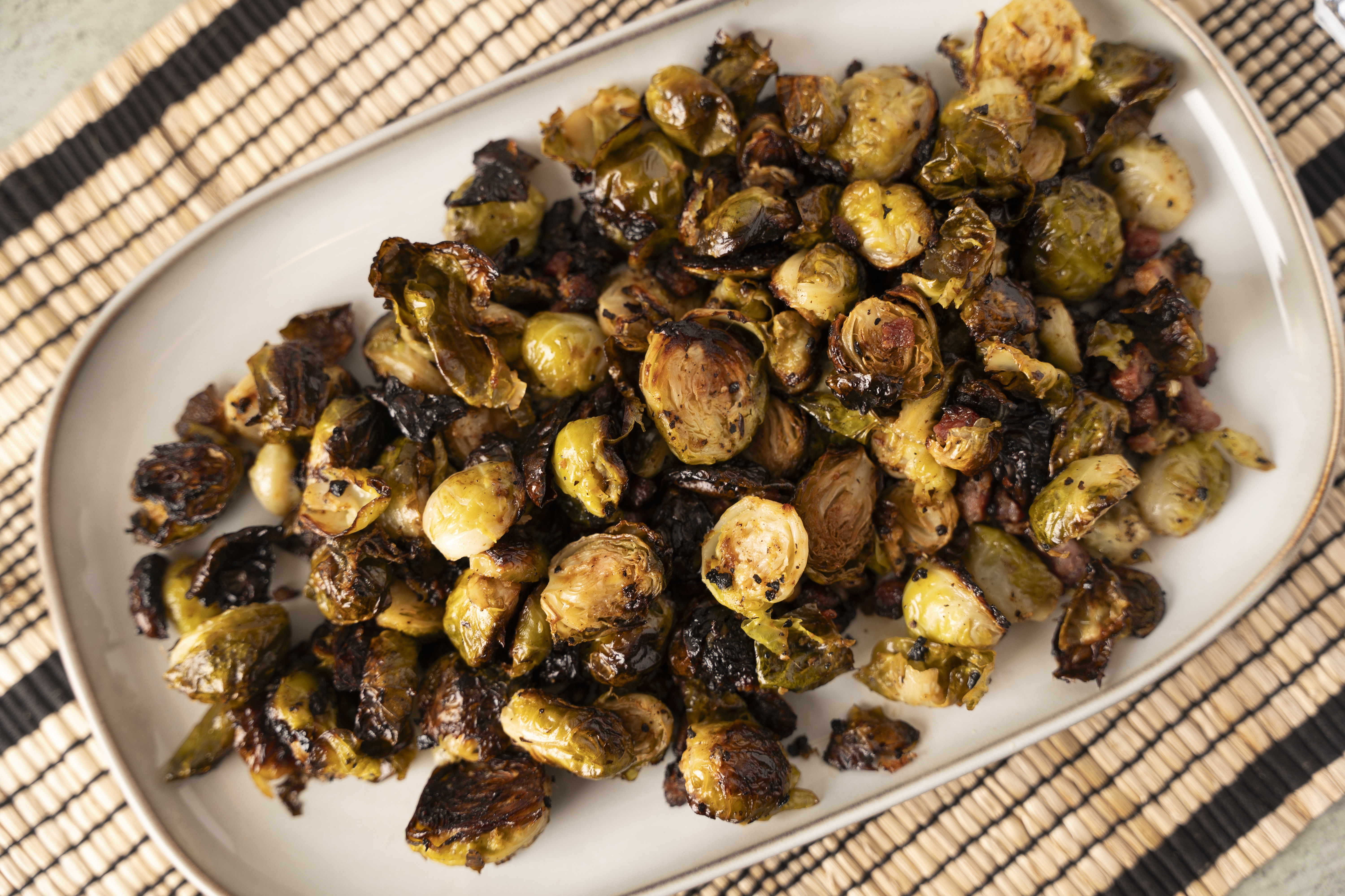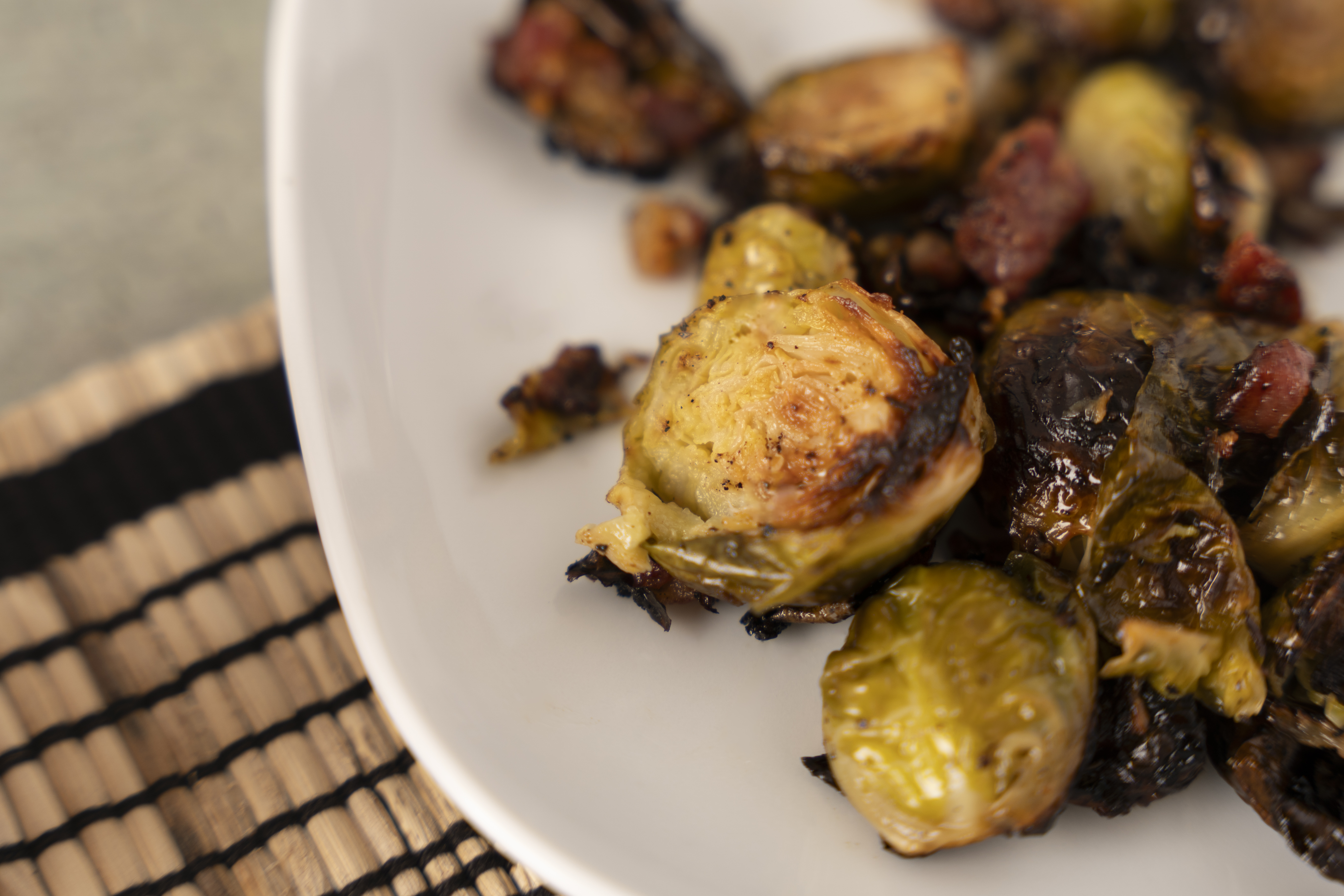 Crunchy Garlic Brussels are basically the apex way of serving up the newly popular veggie! The leafy, tender-on-the-inside, crisp-on-the-outside greens are just perfect when roasted with some succulent pancetta and fragrant garlic, bringing out the best in all three flavors! A little light seasoning and bam! Instant vegetable heaven! Crunchy Garlic Brussels are something to behold!