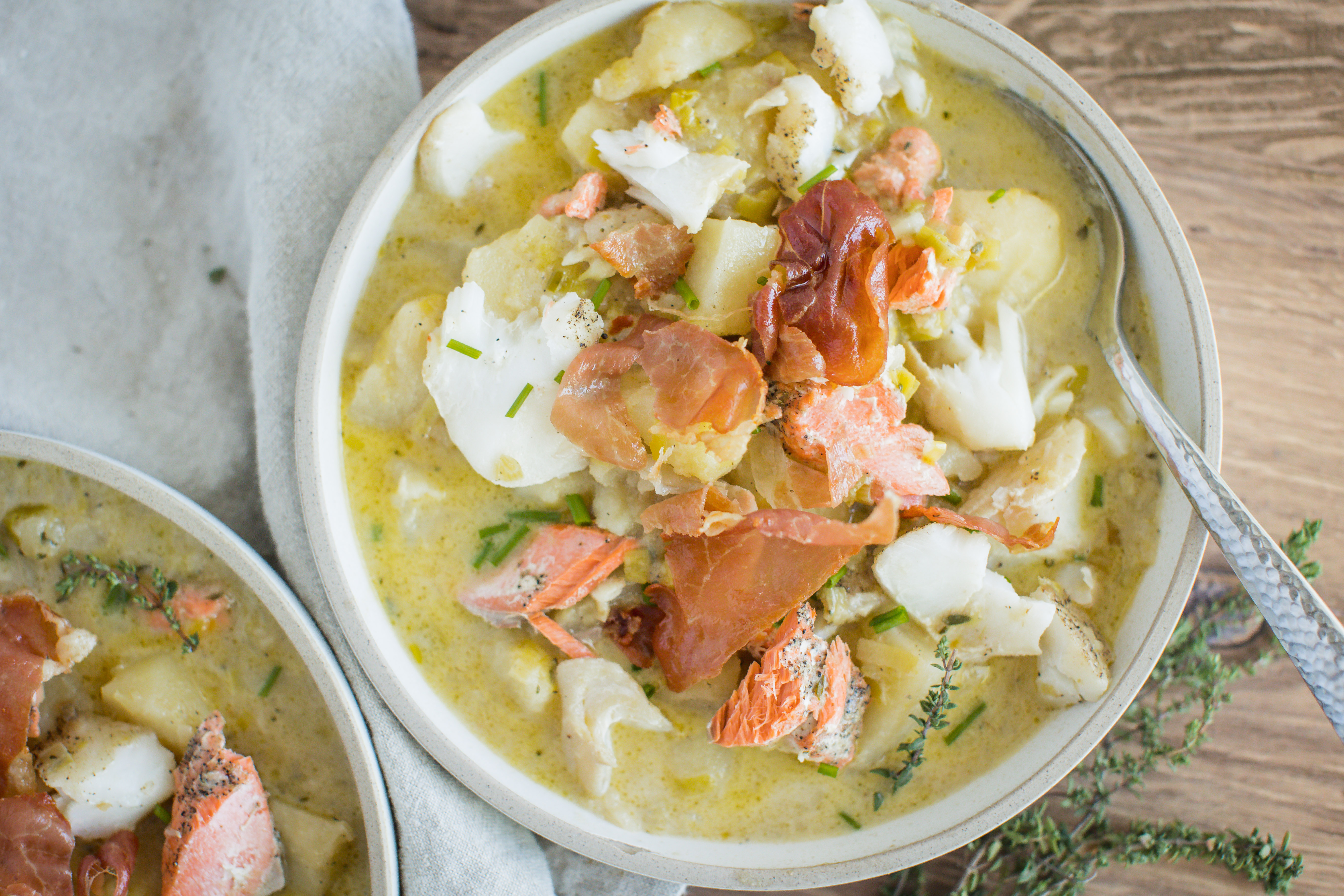 Ahoy matey! Cast all of your dining worries away when you have this boat-sized bowl full of seafood goodness at your table. Dock Chowder will lure you in and have you floating along in a whole new depth of dinner flavors in no time. It's a loaded ship of tender potatoes, flaky salmon, and mild pollock, along with a wonderful sea-mate of seasoning and the creamiest broth that will get your sail set in the right direction. No baiting here! If you are hankering for a taste of the sea, this Dock Chowder will reel you in with the best taste on the coast (or the Midwest, or wherever you may be), because it's stocked with the best sea-fairing flavors that you could dream of. One bite and you will be hooked!