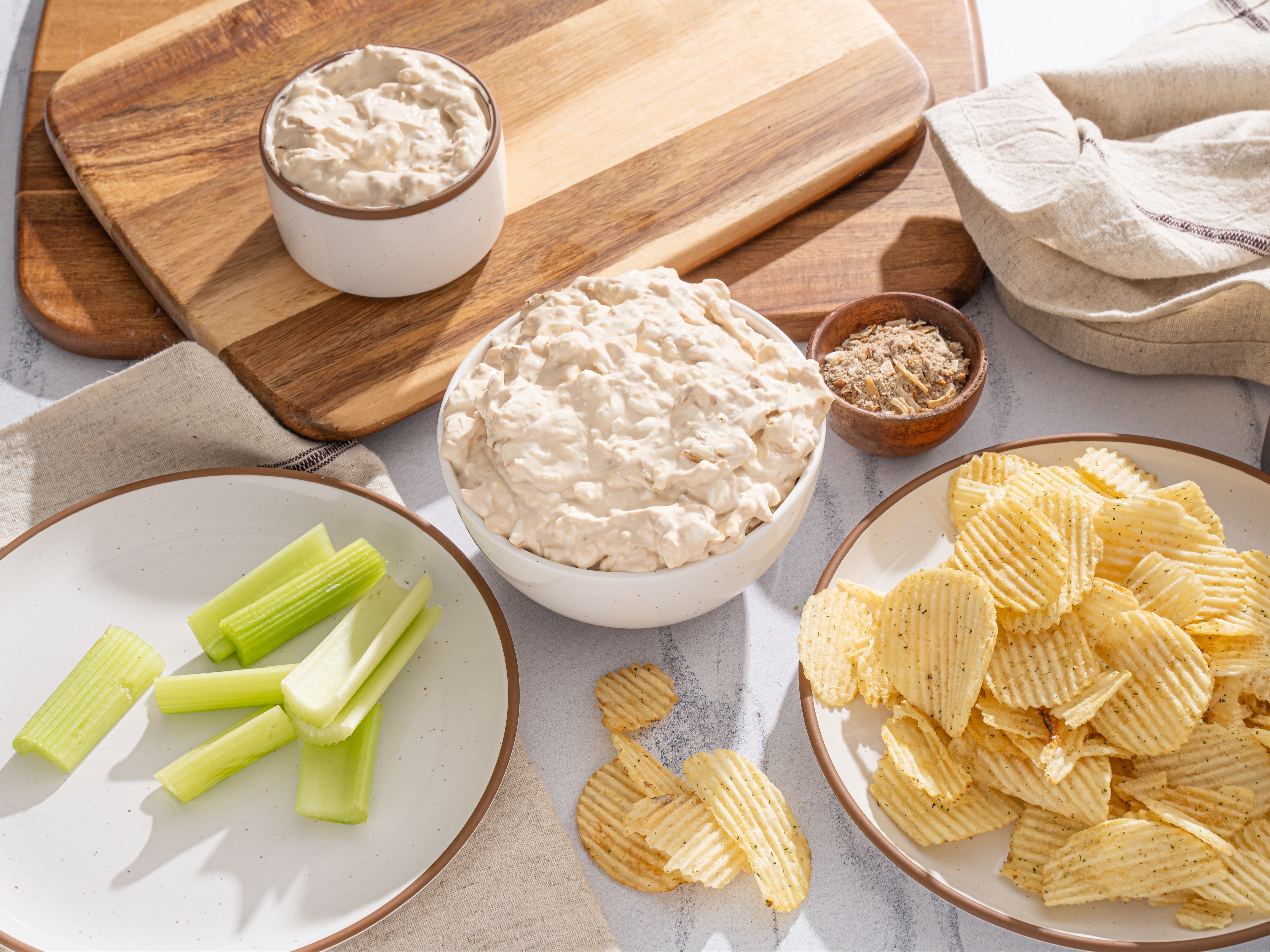 Step 3 -Serve the dip with the veggie sticks and/or the potato chips.