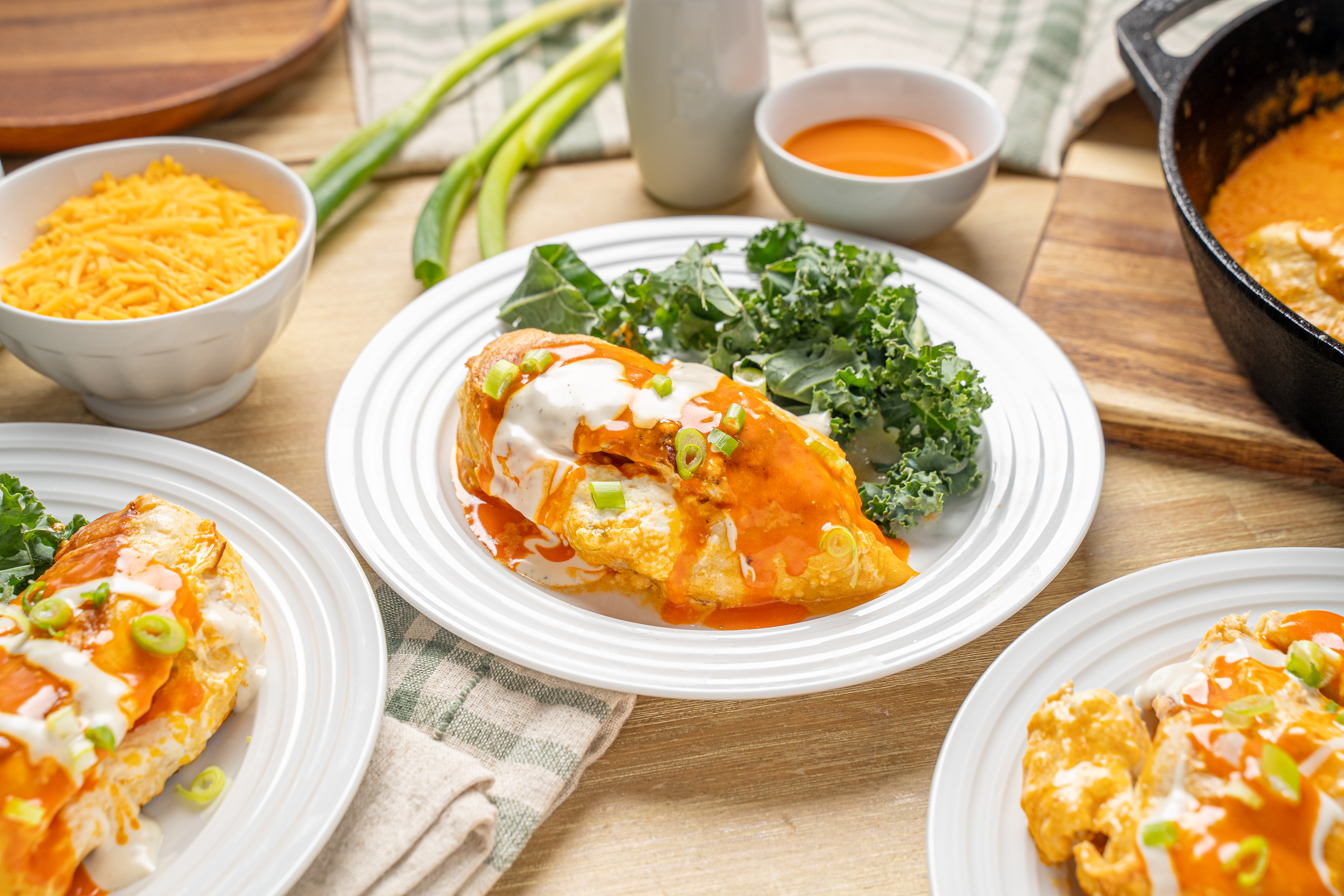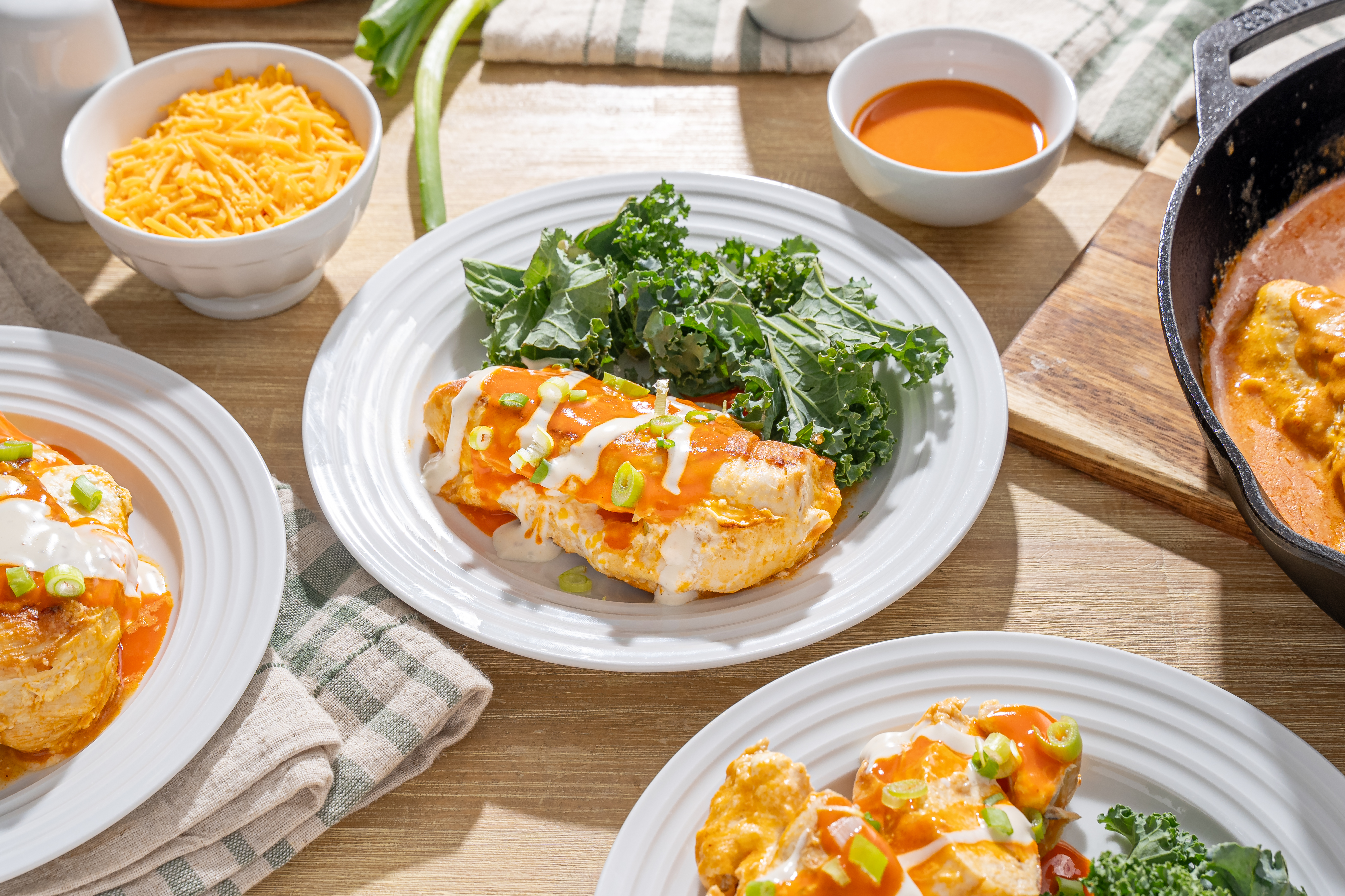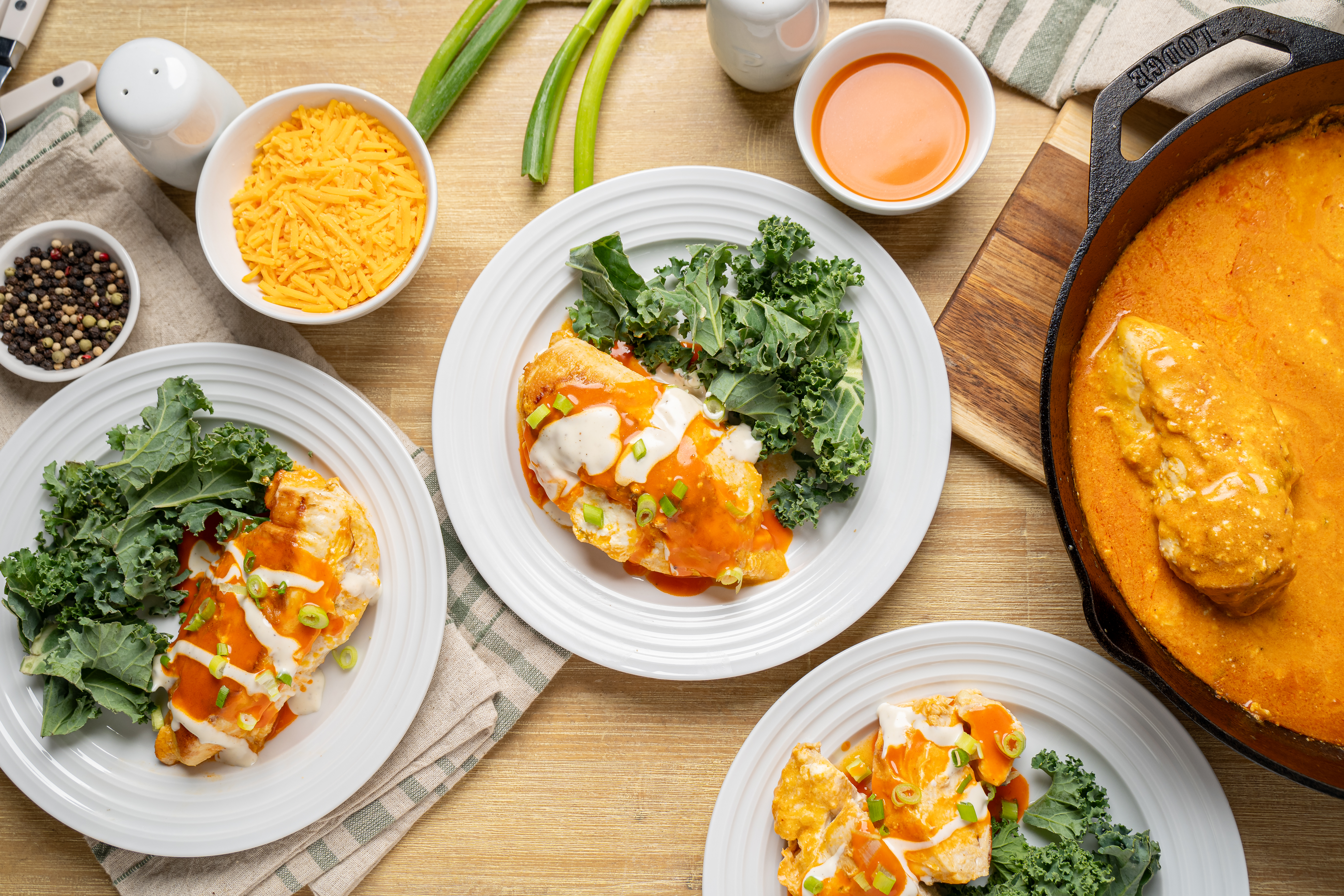 Step 11 -Serve the chicken topped with the sauce, the extra ranch dressing, the extra green onions, and the blue cheese.