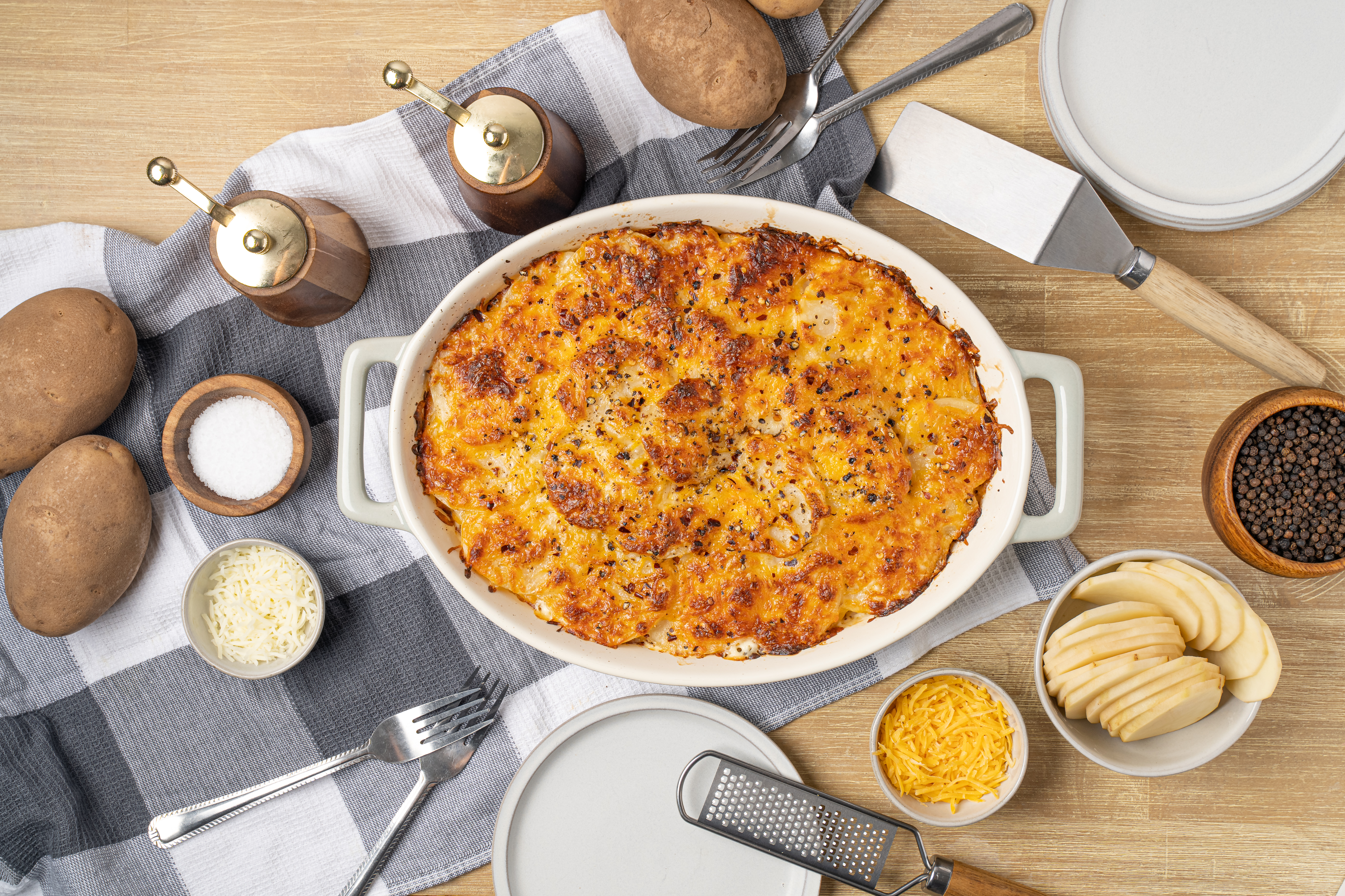 - 3 medium russet potatoes, peeled and sliced into 1/8-inch-thick discs