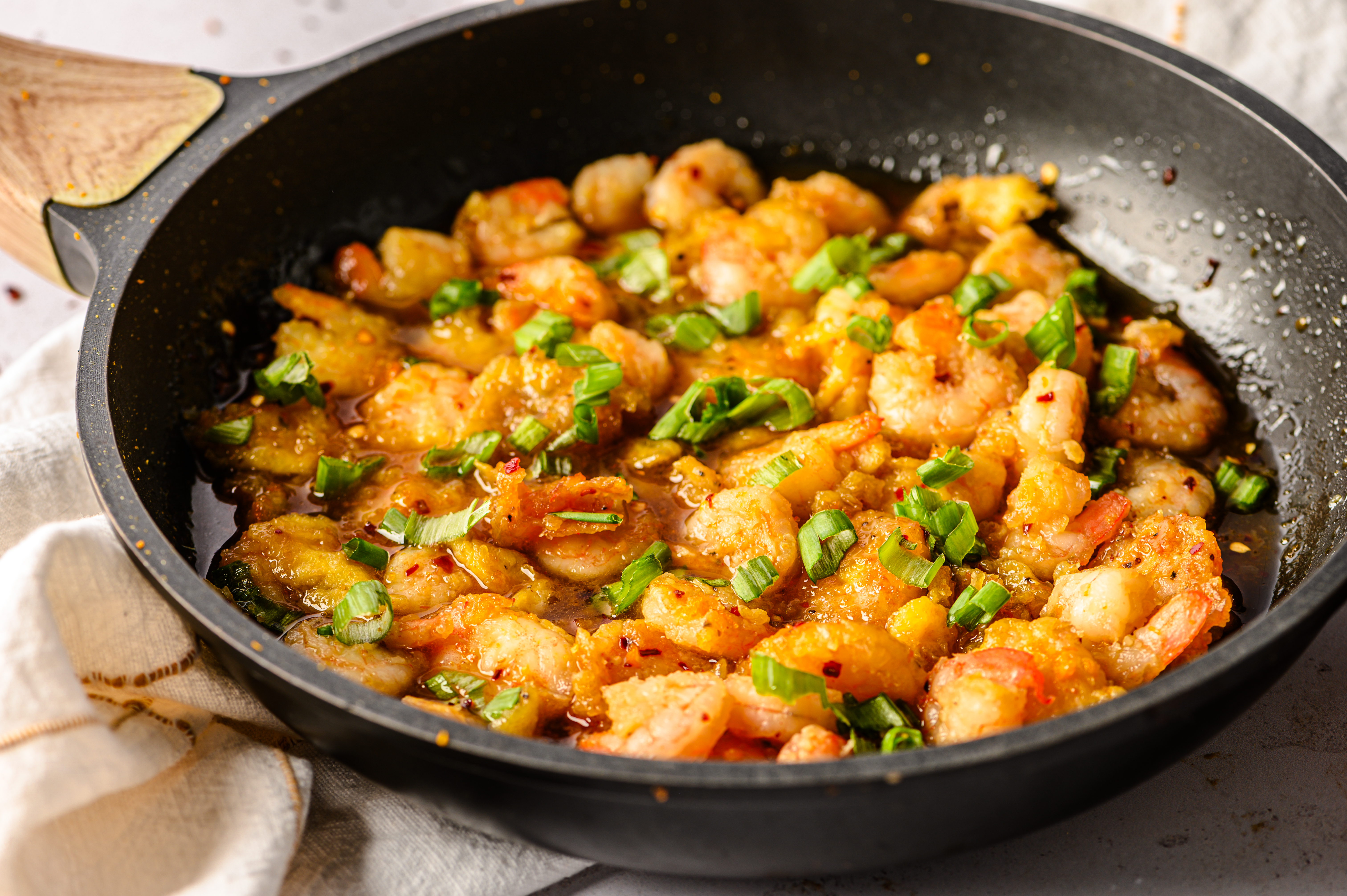 These shrimp sure do meet your taste buds with a bang! Honey Firecracker Shrimp are pan-fried shrimp, golden, savory, and naturally sweet. Sounds good already, but then the Honey Firecracker Shrimp goes the extra mile! Each shrimp is coated in a sticky, sweet, and spicy honey-orange glaze that is sure to dazzle your taste buds with just a touch of aromatic herbs! It's an explosive flavor that is sure to wow you!