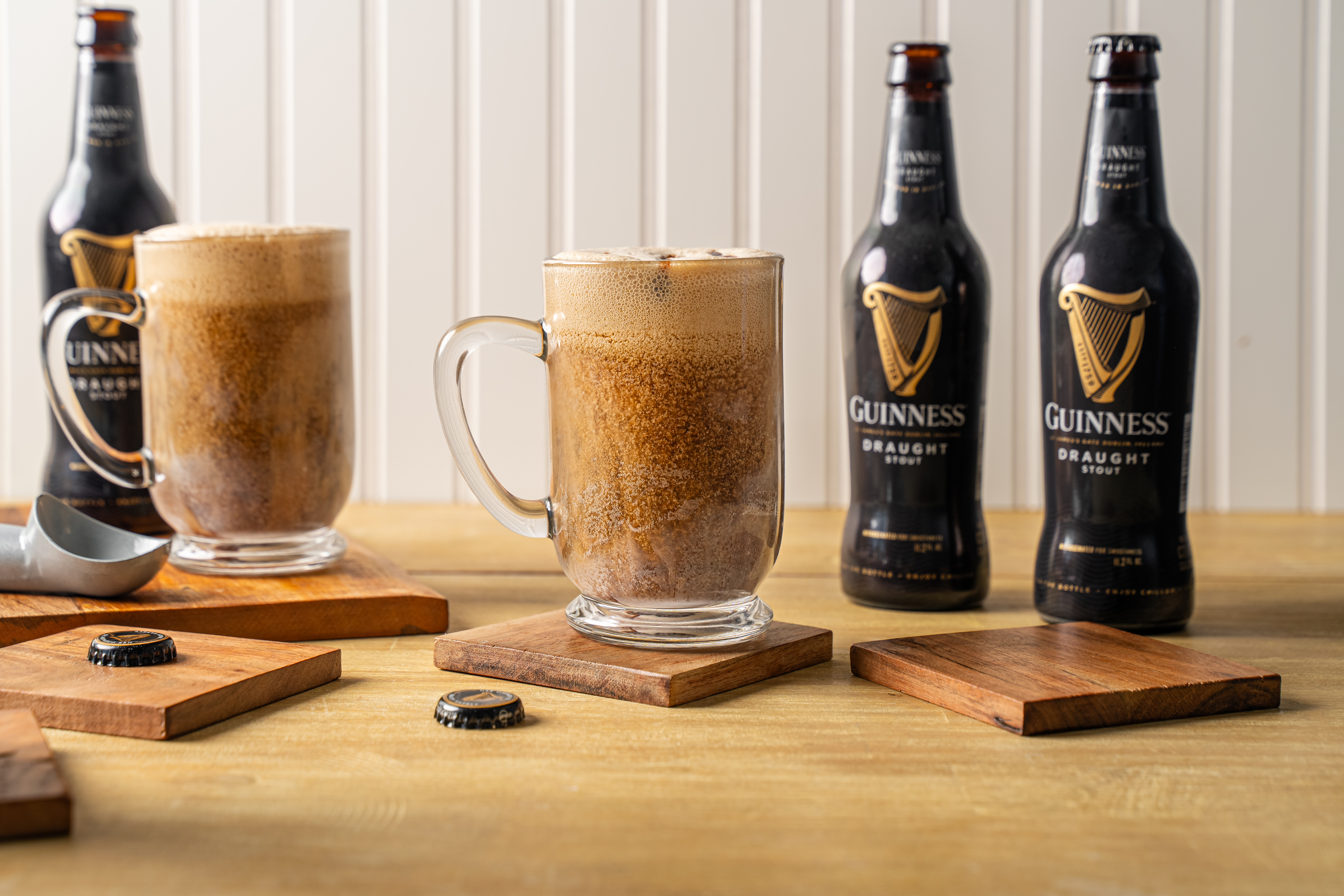 Step 1 -Equally divide the ice cream between two glasses, then evenly top the glasses with the beer.
