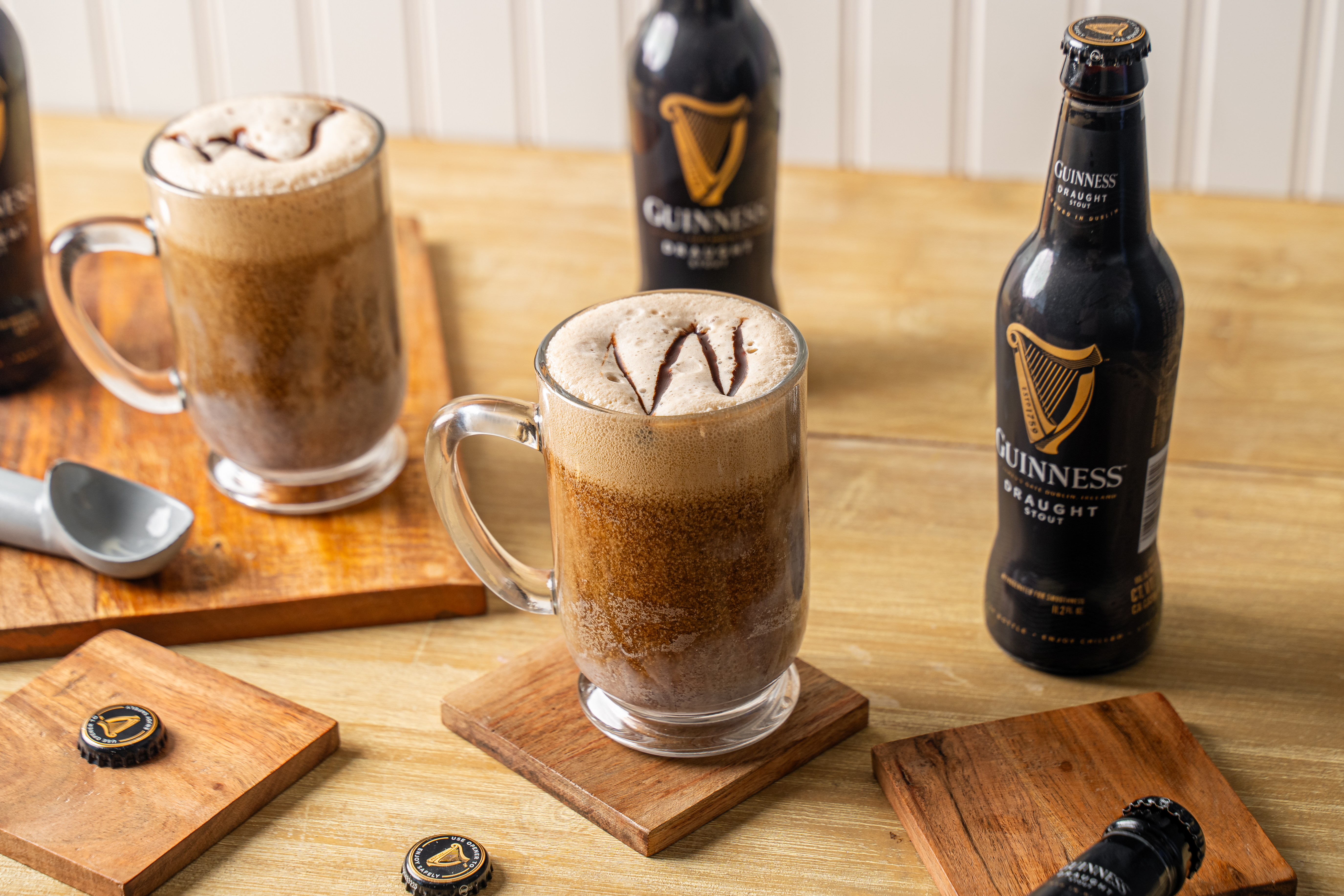 You're in luck! If you've been searching for a boozy treat, then this Irish Pub Float is sure to be the metaphorical pot of gold you've been longing for. All it takes is a bit of creamy, vanilla ice cream, a splash of your favorite stout beer, and a drizzle of some sweet chocolate syrup and you've got yourself a mug 'o delight! Irish Pub Float is sure to "shamrock" your world!