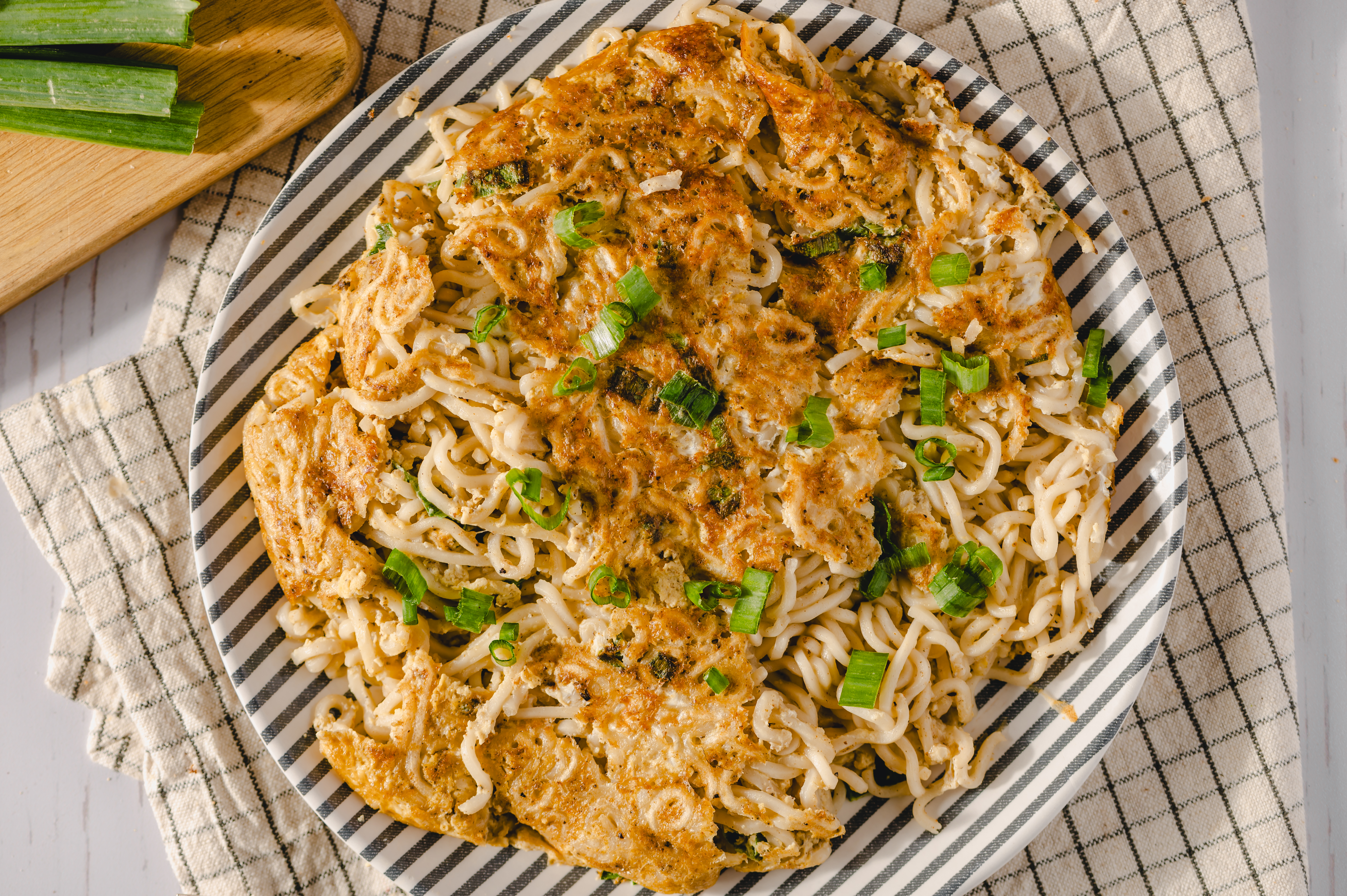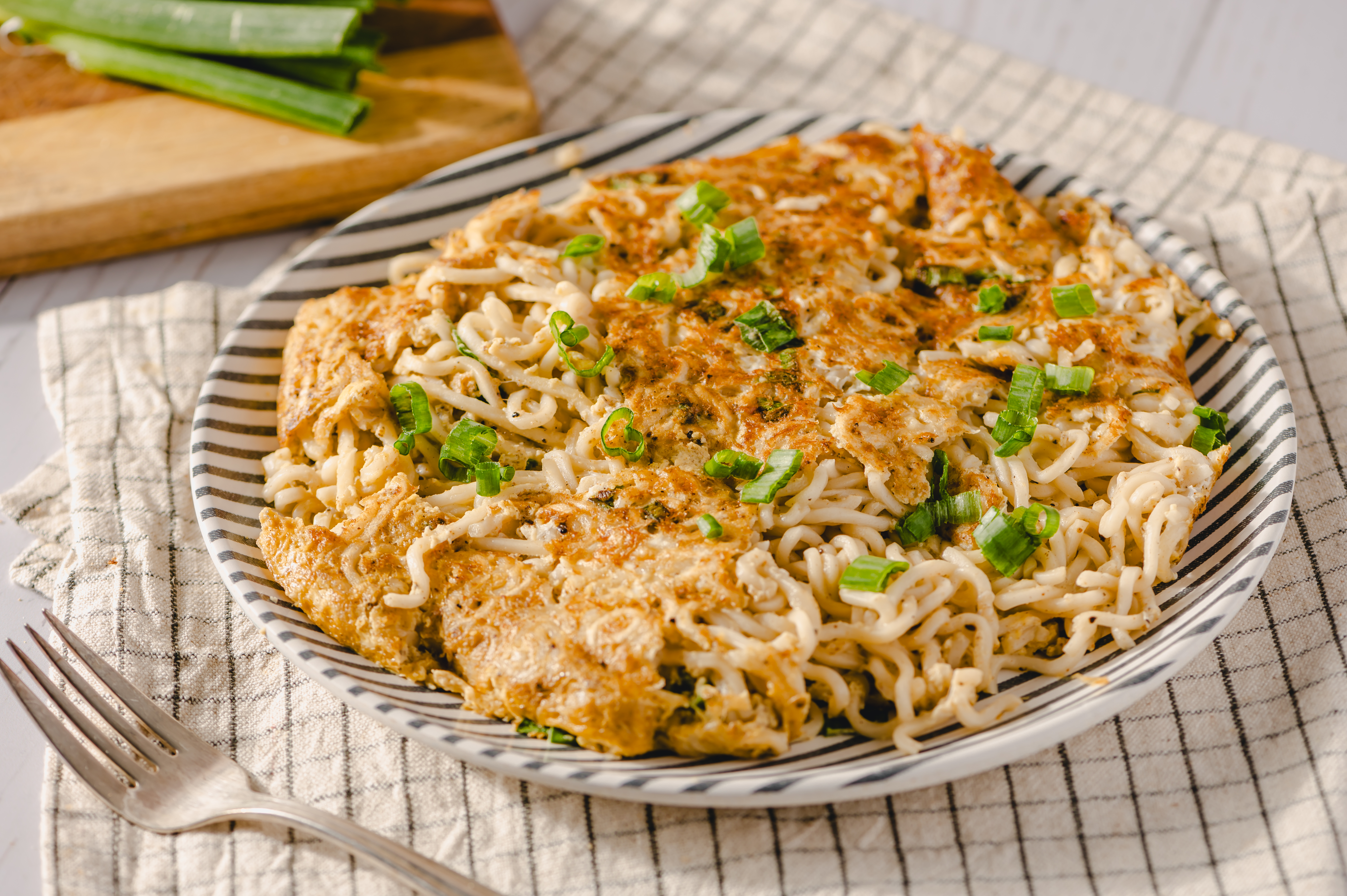 This is a very, very different kind of omelet than what you might be used to... but just wait! One bite of Noodle Omelet and you'll be convinced this is how omelets should be done. The tender ramen noodles add body and satisfaction to the fluffy eggs, making them taste even more nourishing! Savory soy sauce and tangy vinegar add a depth of flavor you wouldn't expect from your eggs! Noodle Omelet is an easy and delicious meal that can be made in a hurry!