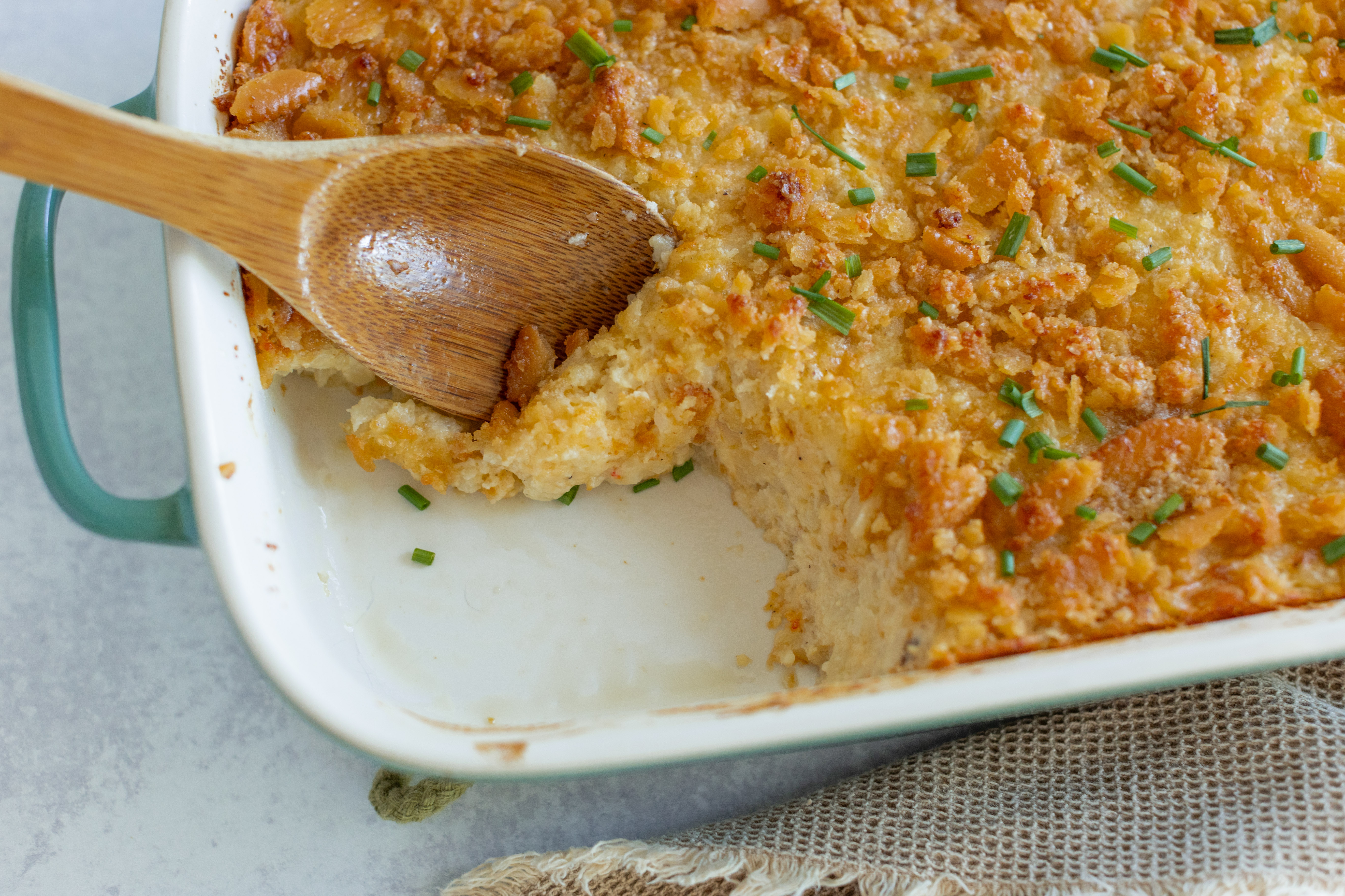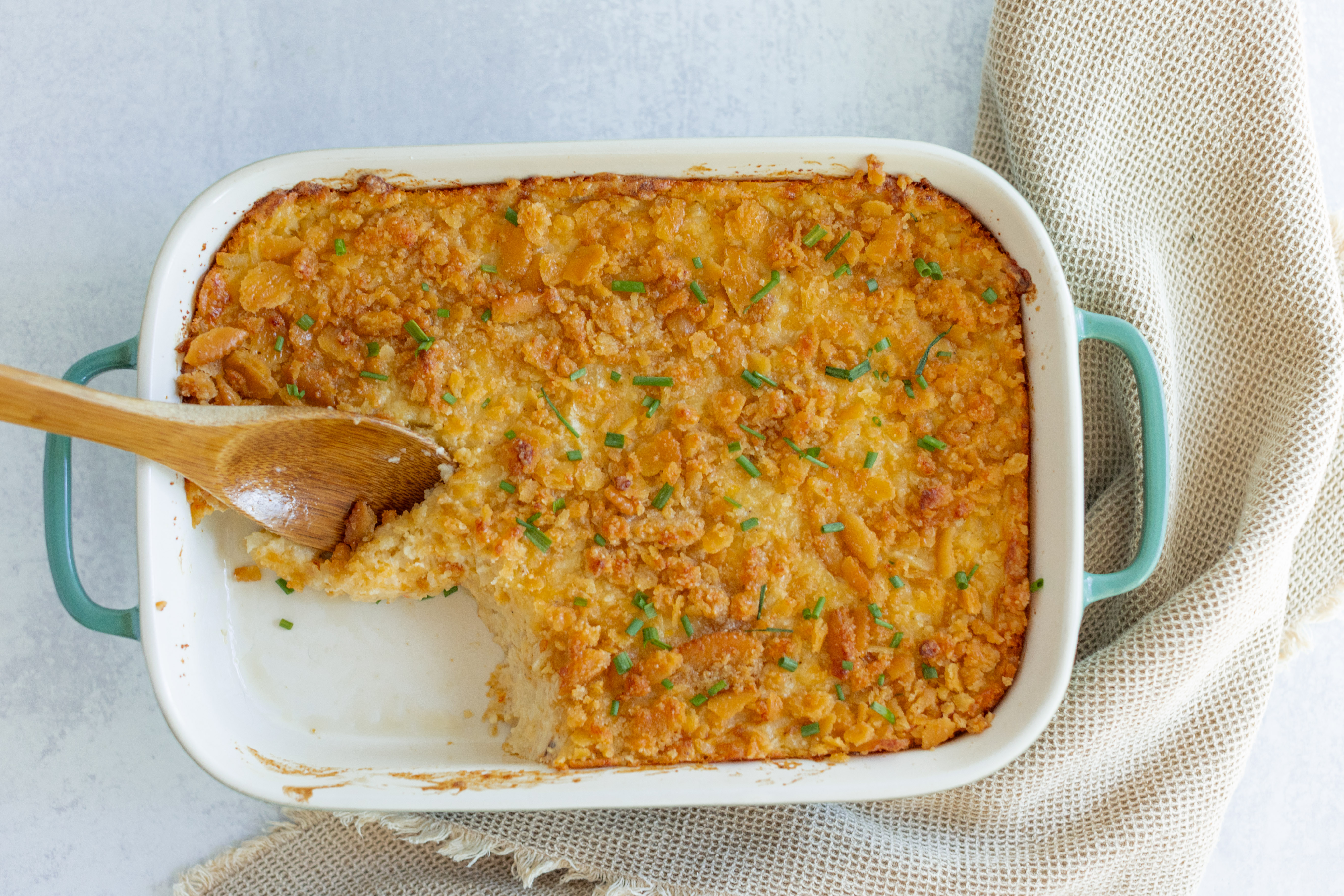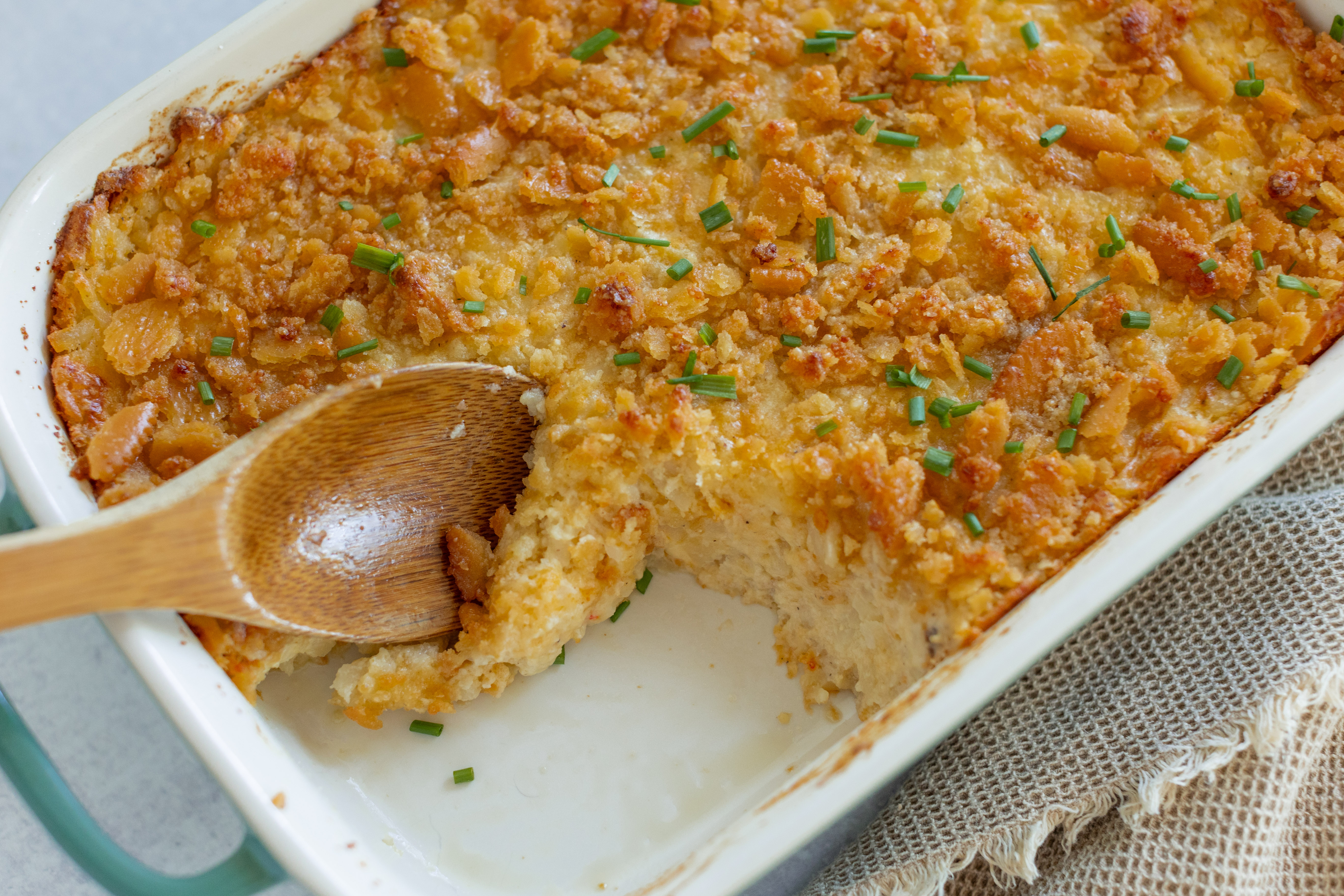Jack up your next side dish and your guests will be astonished! We can't water this one down, Pepper Jack Bake is an exceptional addition to any meal that people will be chatting and singing about for days. These shredded hash browns are tumbling in pails of creamy, seasoned sauce and hills of melted pepper jack and parmesan cheeses... creating a lot of love for one another. Crowned with a bacon-infused, cracker crust (plus more parmesan), this Pepper Jack Bake makes Jill blush from her love of it all. Get pumped up about these delicious spuds; there's no uphill battle here. Everyone will be falling all over themselves for this one. Be careful there, no rush, we will save you some!
