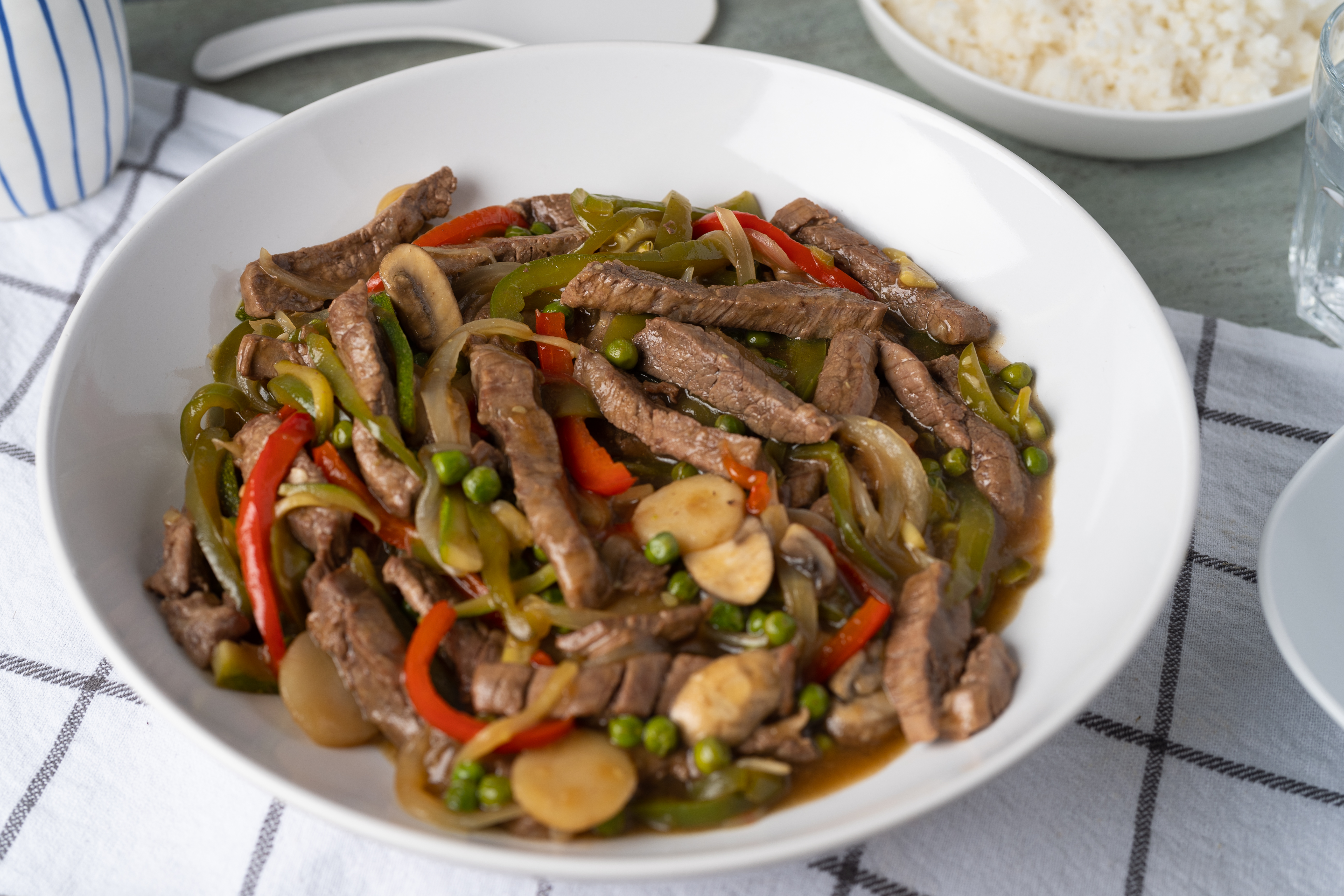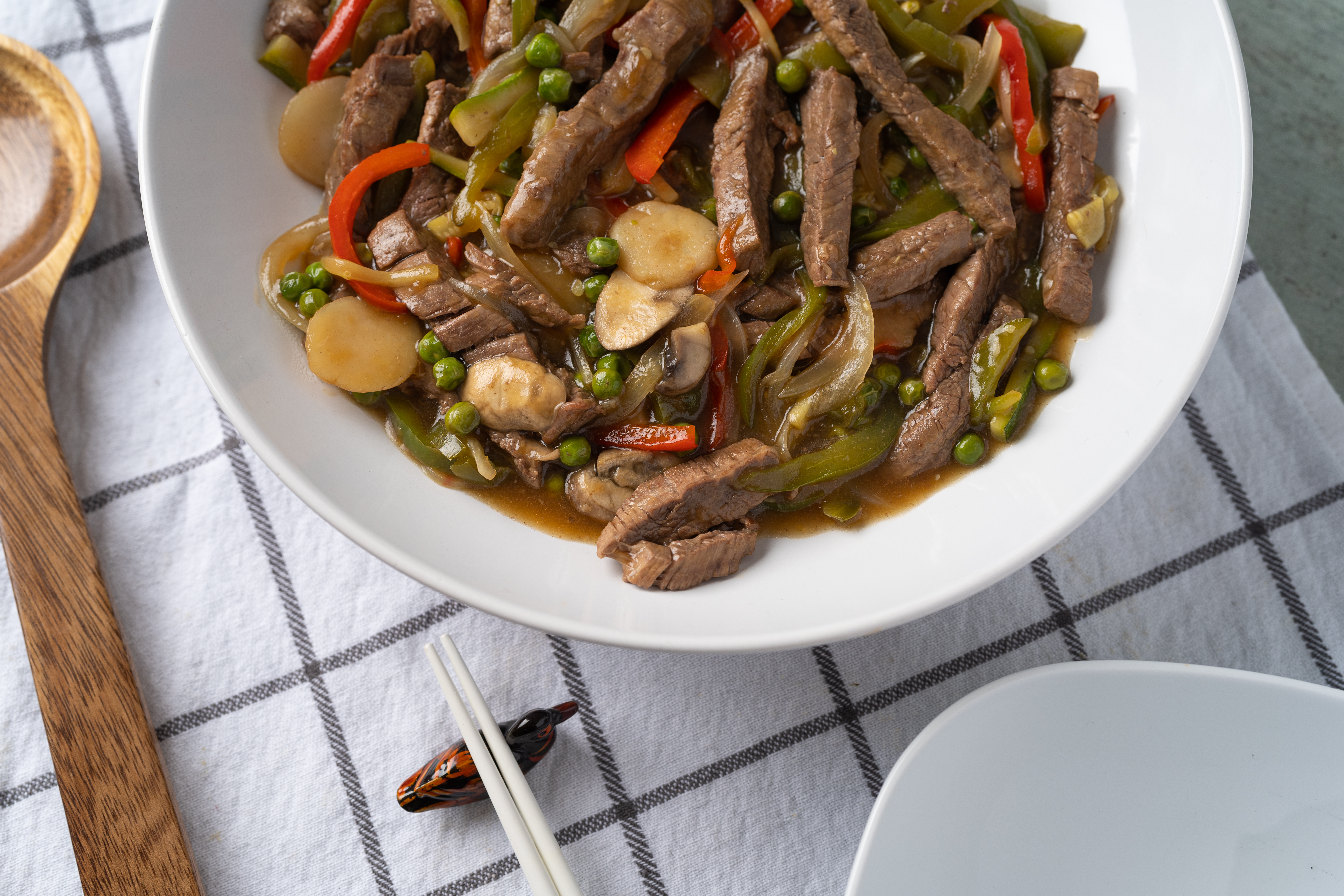 Don't go out! Stay in! Once you taste this Pepper Steak Stir-Fry, leaving the house won't even be a consideration. Trust us! Go ahead and stay in your comfy clothes because this 30-minute meal loaded with juicy, tender flank steak, lots of fresh veggies, and a tangy, rich sauce will surely knock your socks off. Serve it over rice and you'll never think twice about picking up the phone to place a to-go order again. Pepper Steak Stir-Fry is just that powerfully delicious! So, grab your fluffiest slippers and some chopsticks, and dig in!