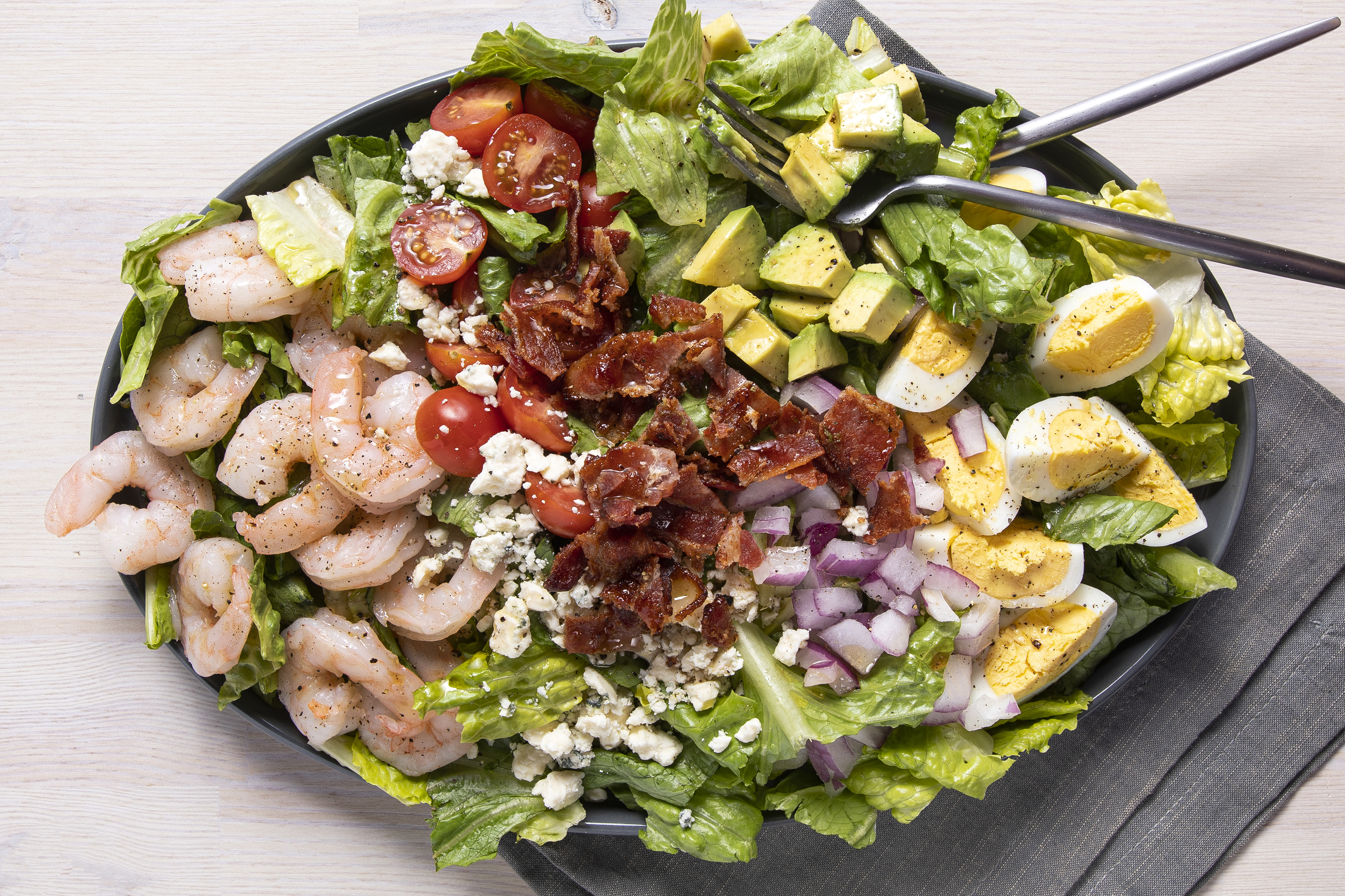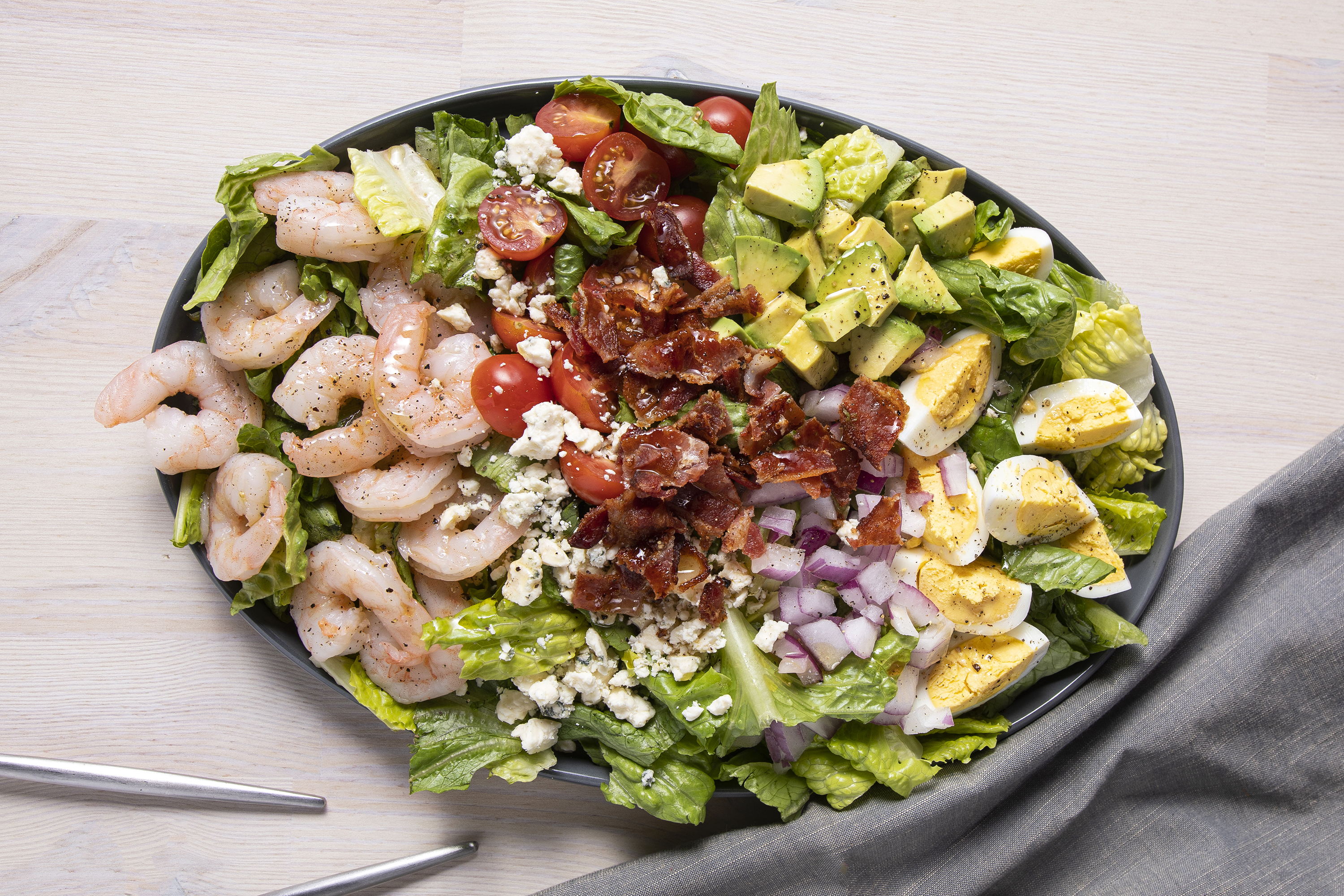 An American classic salad finds its spot on the beach! This Seaside Cobb Salad features layers of flavors with funky blue cheese, hearty hard-boiled eggs, bright tomatoes, and sweet-and-savory shrimp for the true seaside experience. It includes crumbled bacon as well, plus an extraordinary bacon dressing for true succulence! Seaside Cobb Salad lets you find your own ocean oasis!