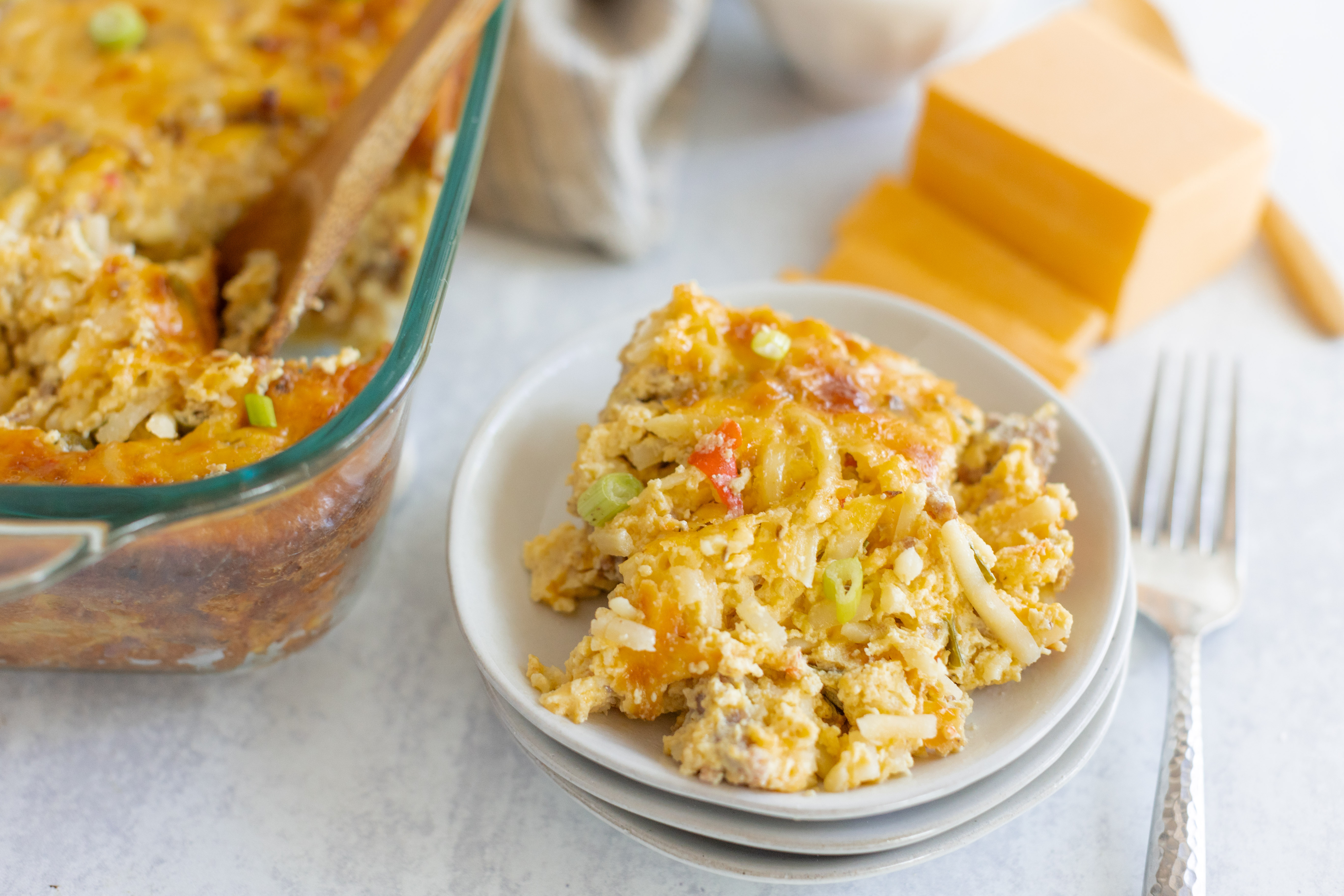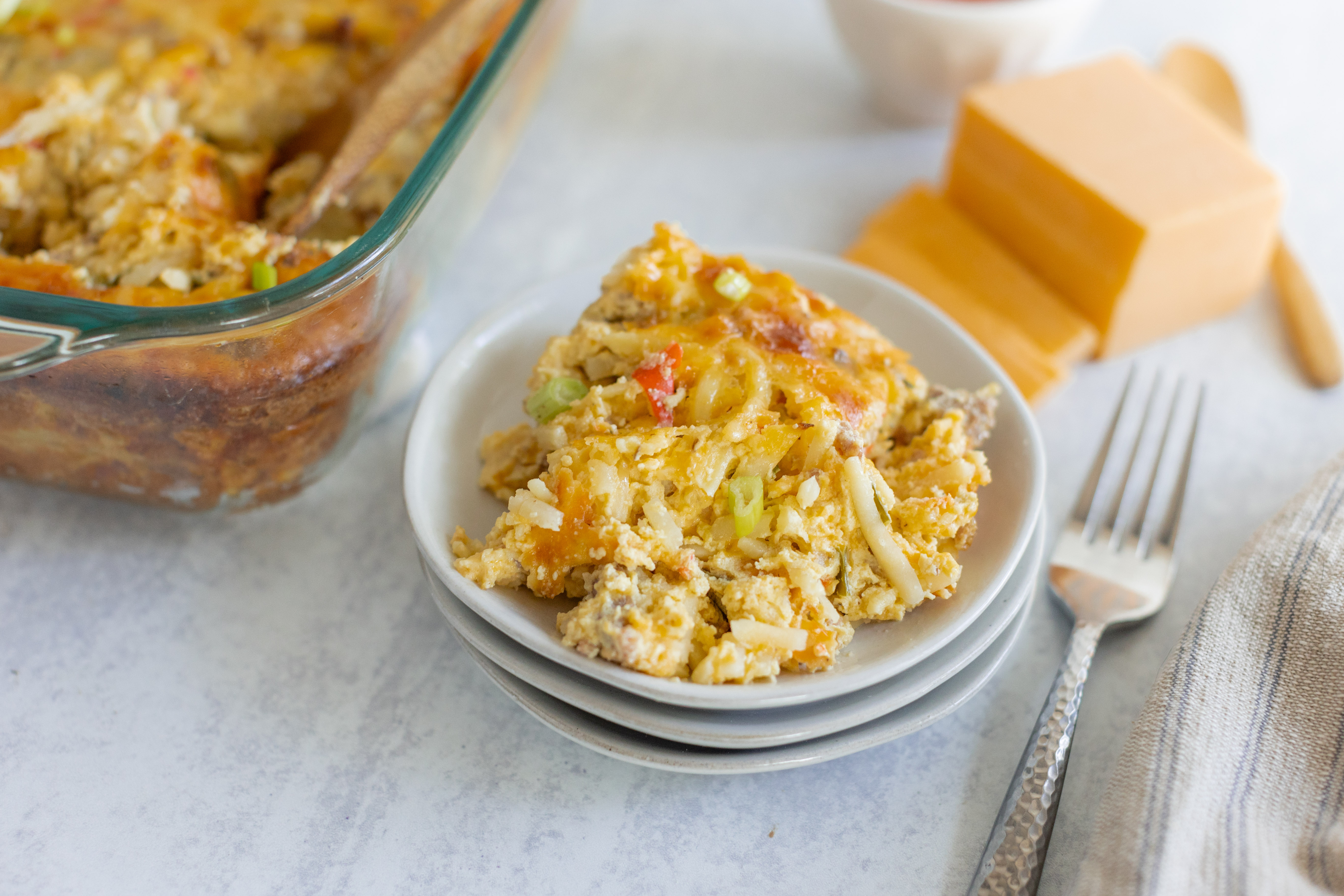 The Simply Southern Hash Brown Bake is simply delicious. That just about sums it up! It's a fluffy bed of eggs filled with spicy chiles, savory sausage crumbles, and tender hash browns. But the real Southern soul of the dish lies in the creamy, vibrant, rich flavor of the pimiento cheese mixed right into the eggs! Simply Southern Hash Brown Bake is simple to make and a breeze to enjoy to the fullest!