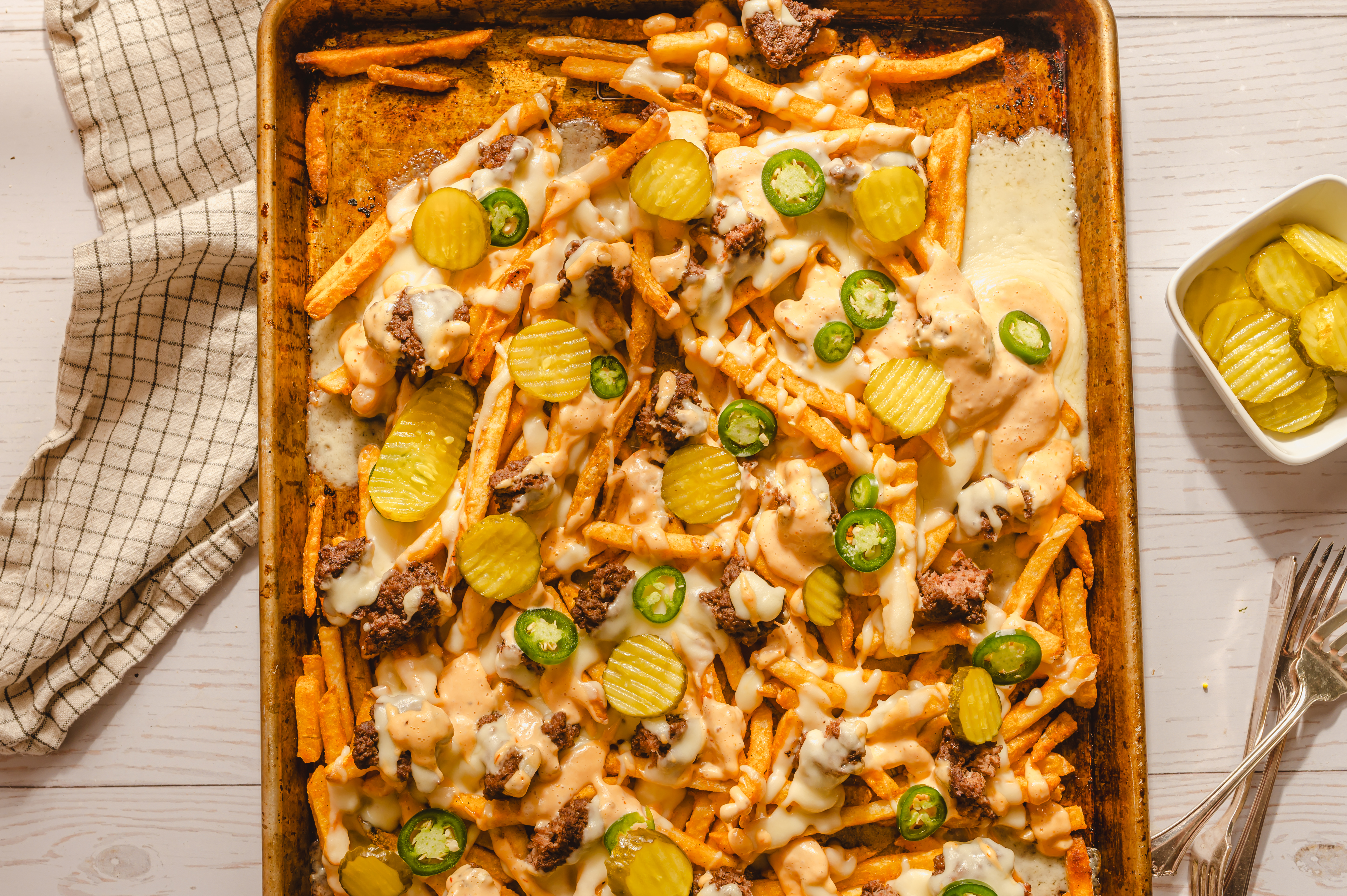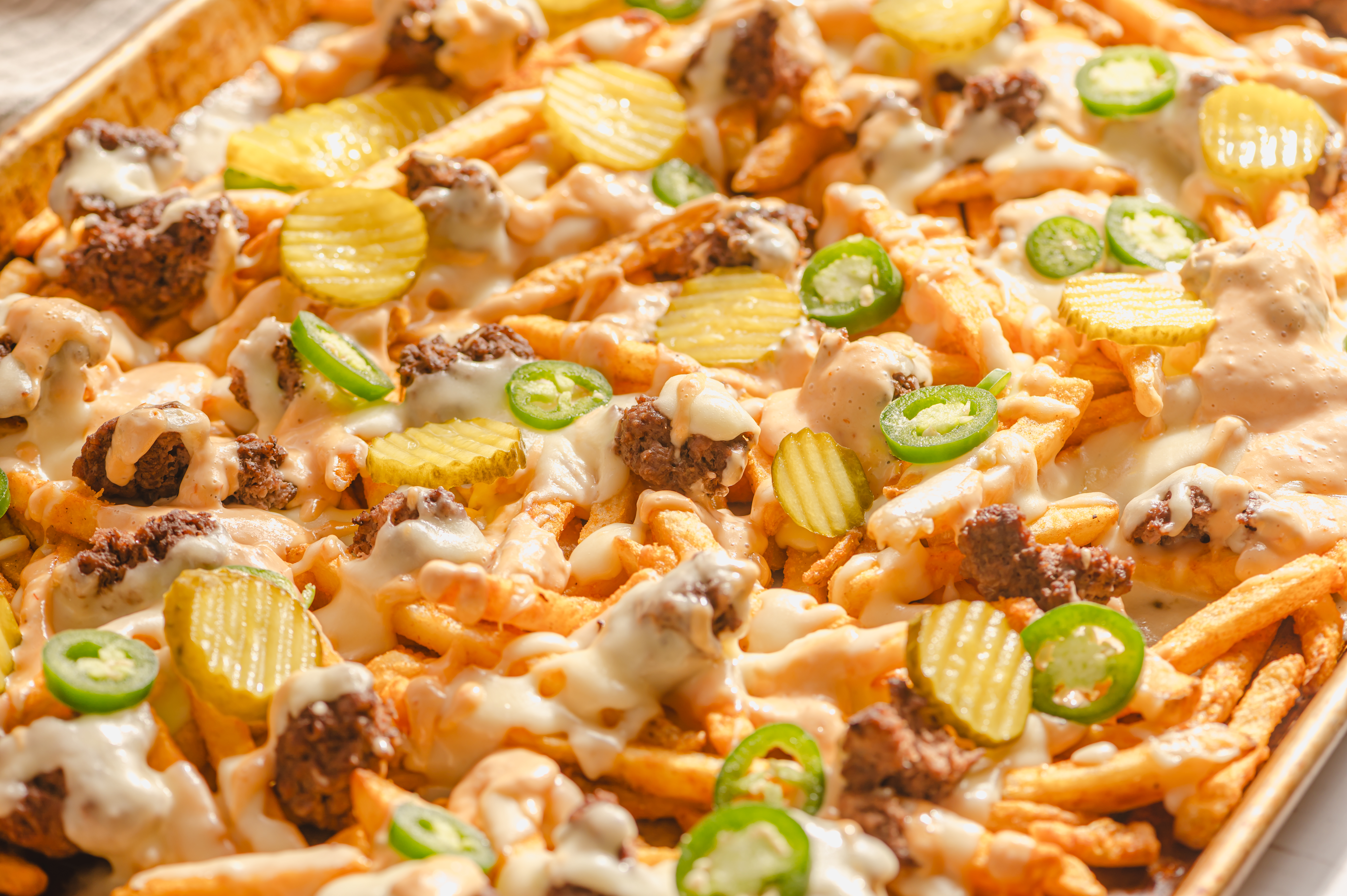 You've had burgers and fries before, of course, but you've never had burgers that are also fries (or fries that are also burgers... it's hard to say!). Smashburger Fries top a bed of crispy, golden fries with a creamy, melty cheese sauce and of course, smashed burger pieces. Savory and juicy with a glorious crust, smashburgers really are a delicious trend! Oh, and homemade Thousand Island dressing just makes Smashburger Fries a true fast-food-at-home masterpiece!