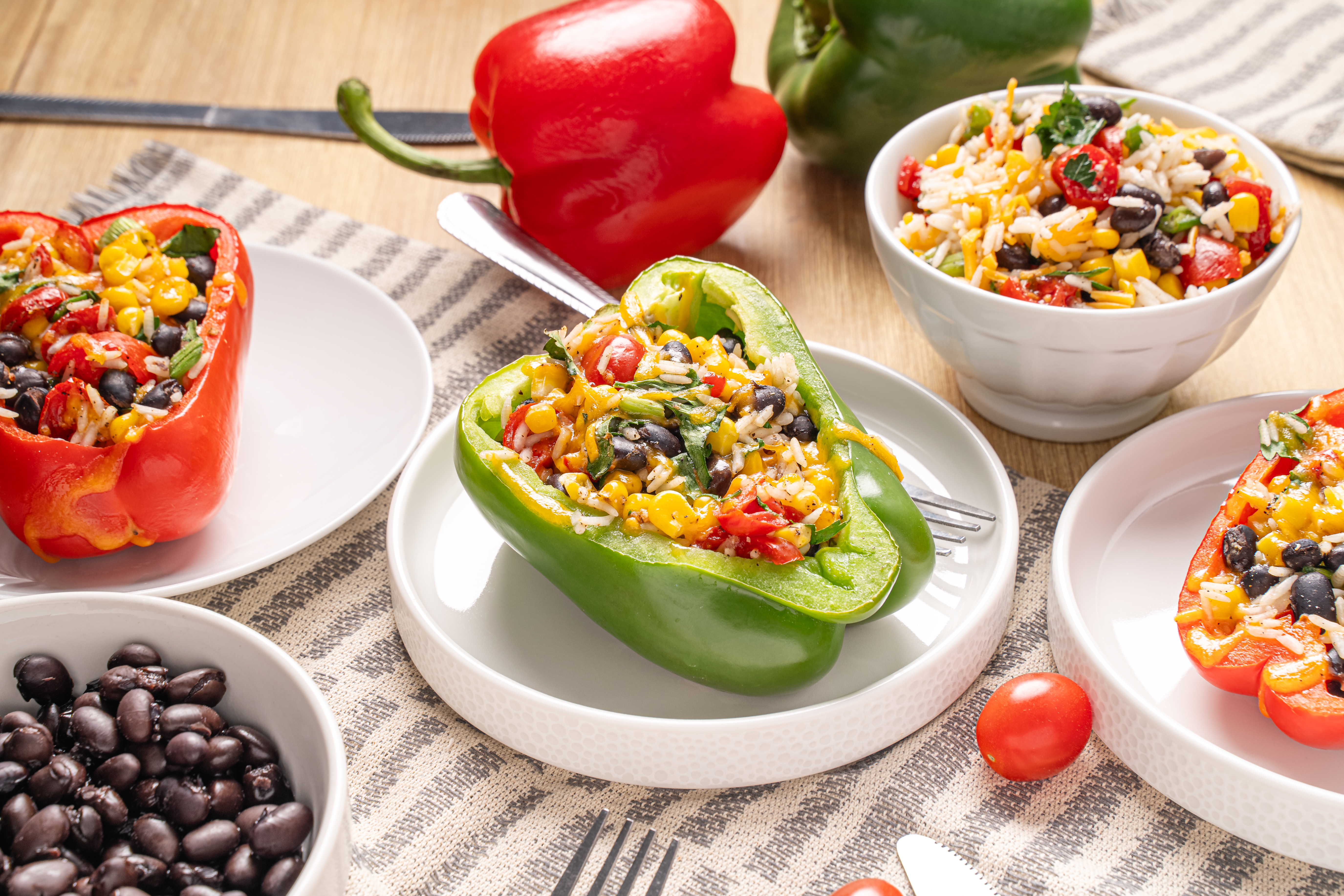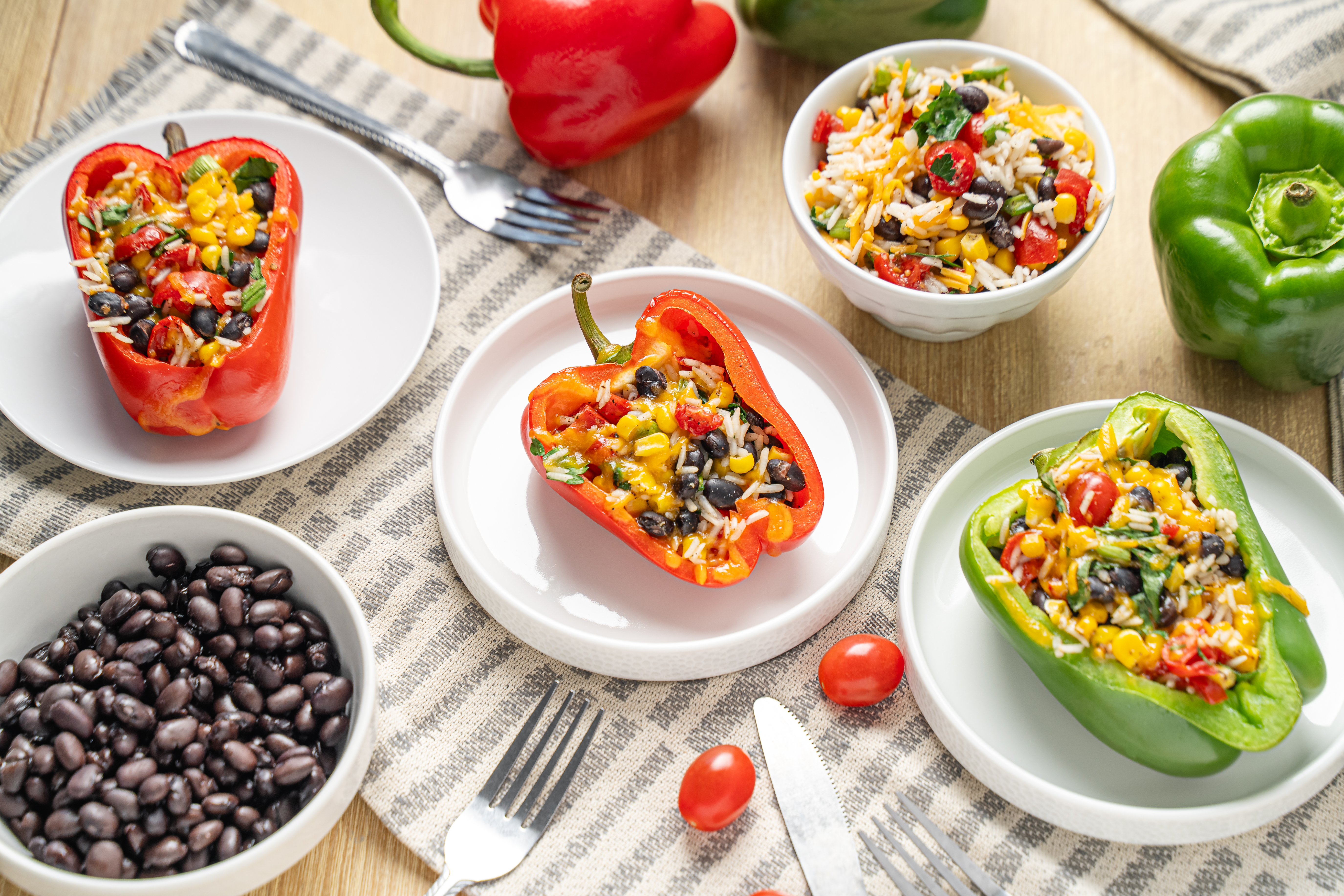No mixed signals here! This will be the easiest, yet the most delicious, meal to revive you when you're feeling down! SOS Peppers are here to help save the day! Bell pepper halves are loaded with a Tex-Mex trio of seasoned rice, black beans, and corn, and then topped with cheese for a melted masterpiece in nature's proverbial cup of deliciousness. Add SOS Peppers to your cooking rotation and watch as coming to the dinner table becomes urgent!