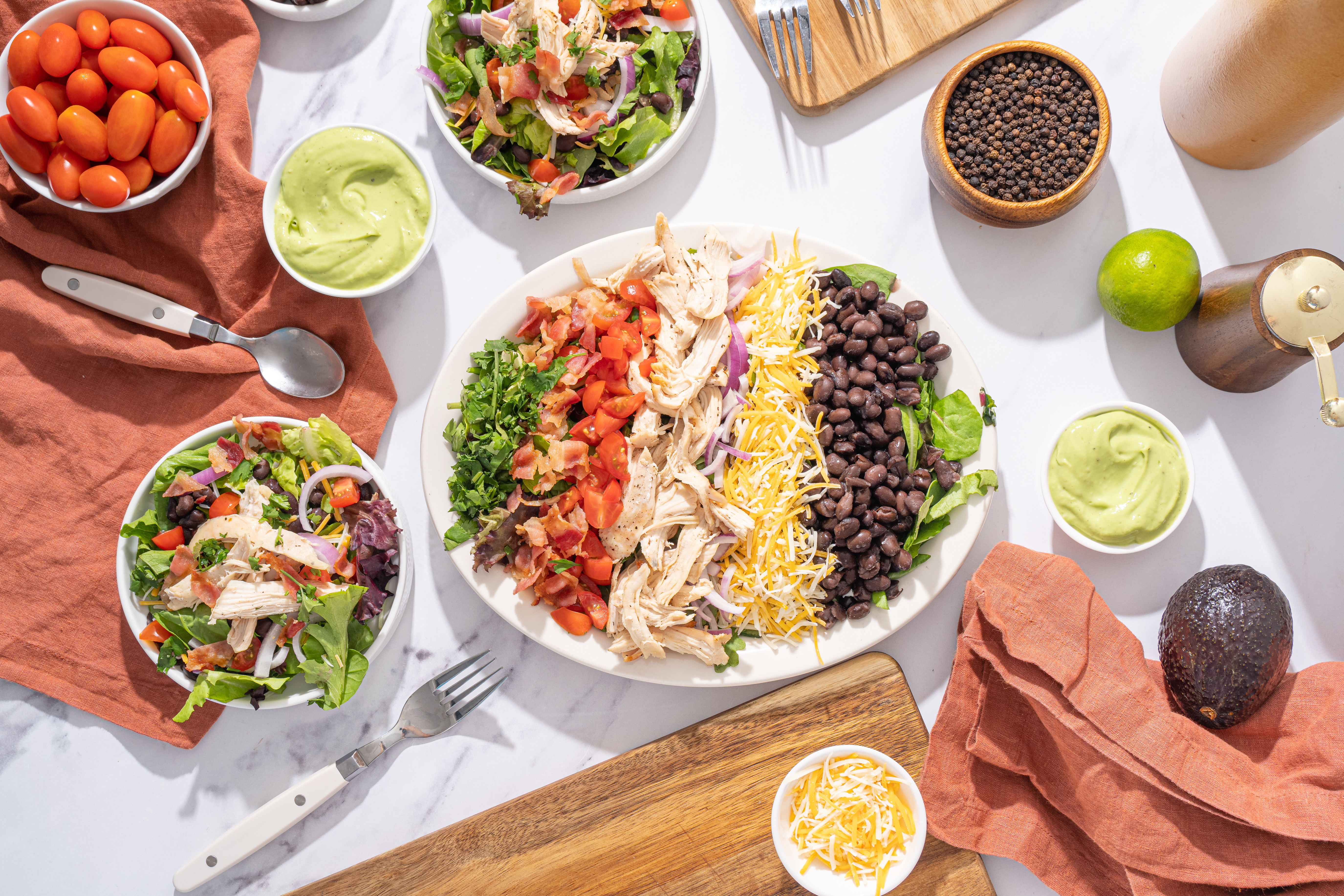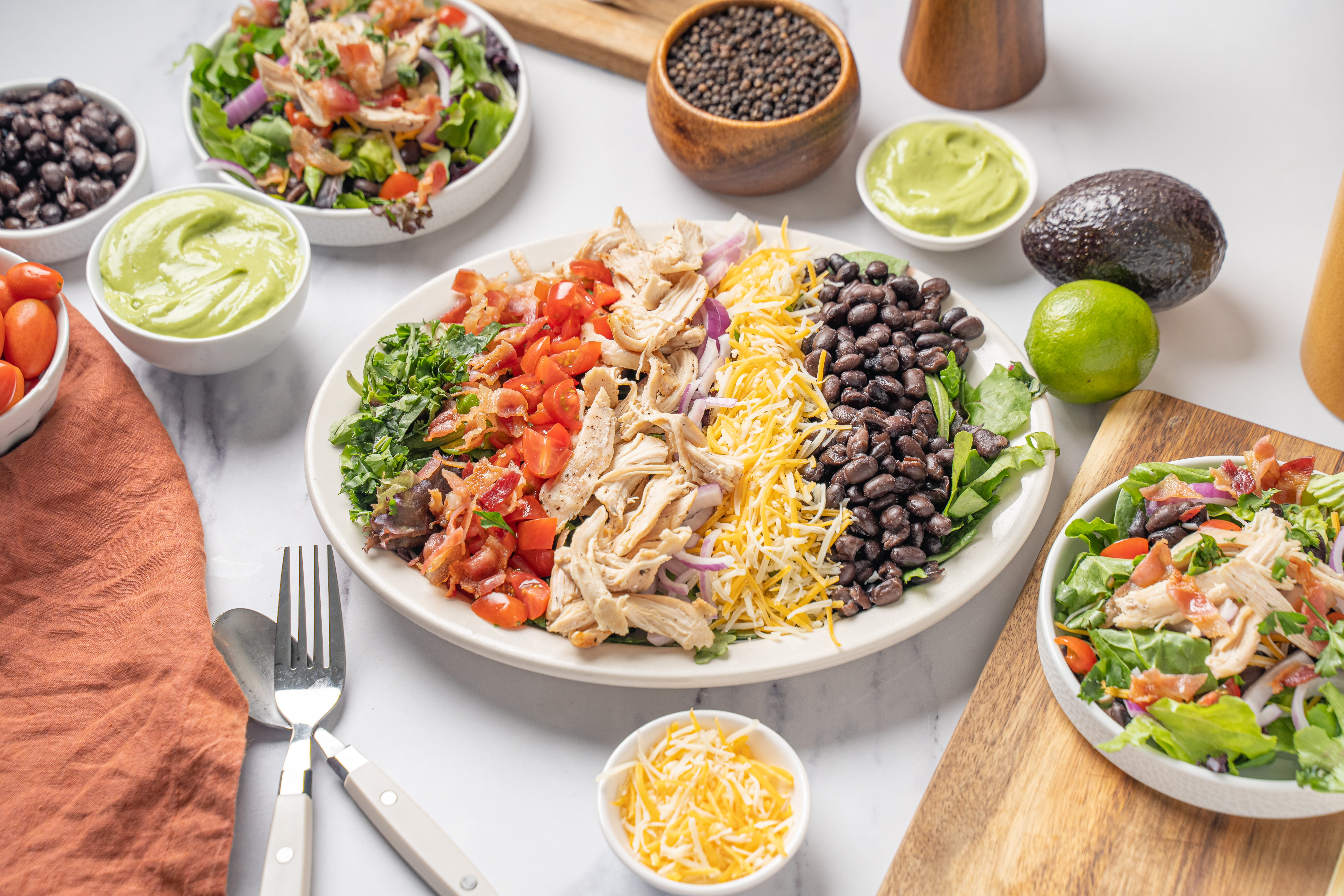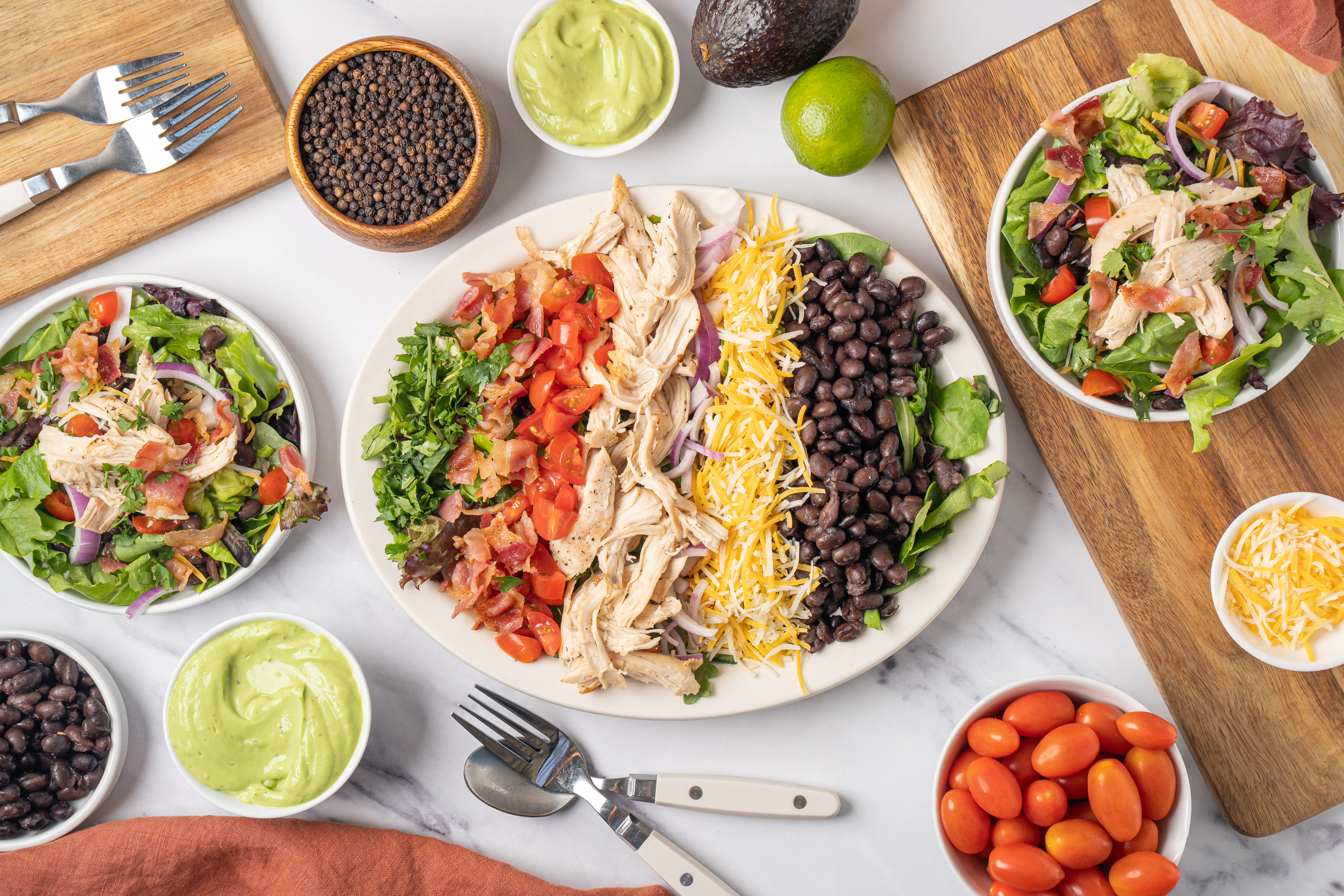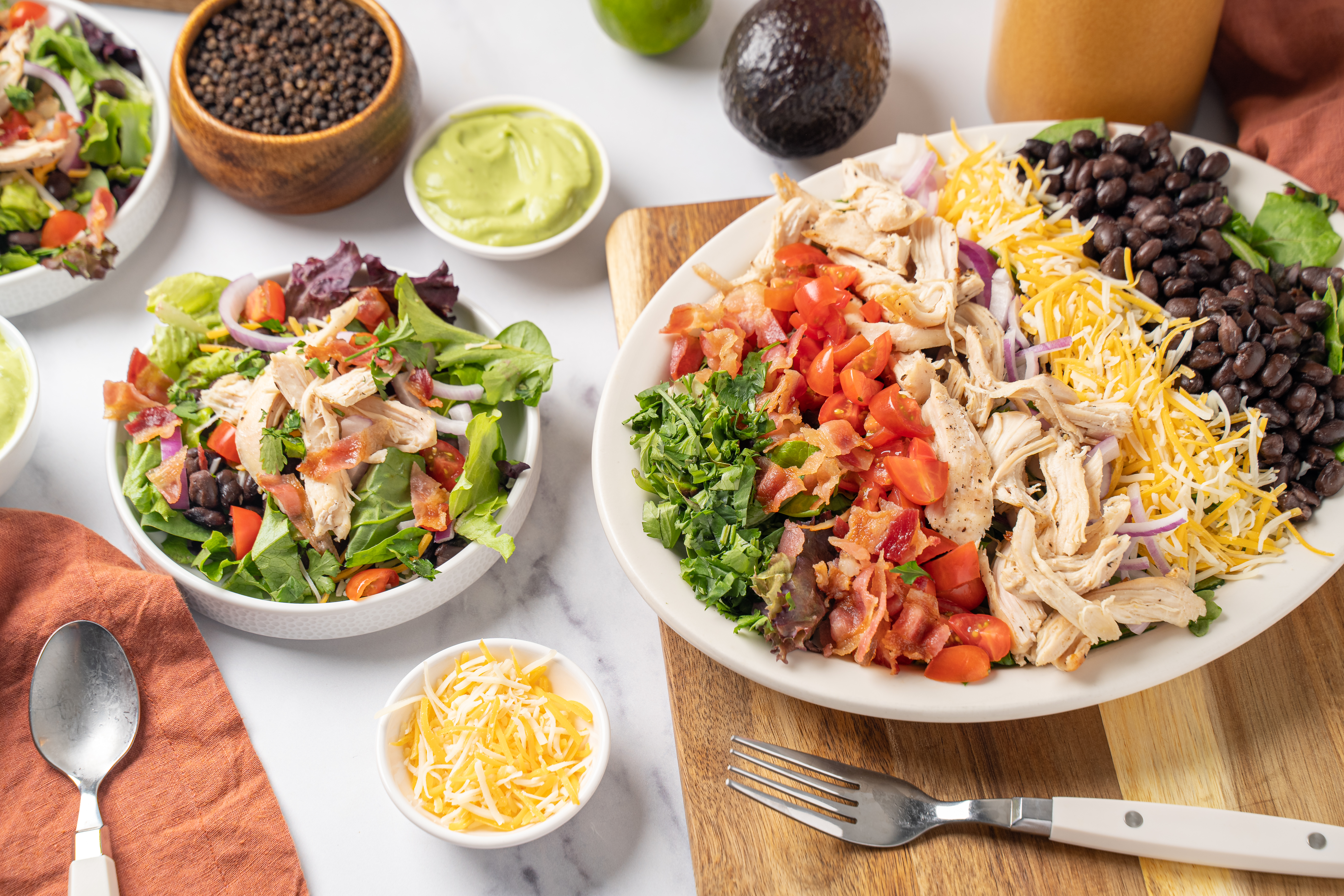 The Southwest's Best Salad draws from that ever-magical font-of-flavor, the Cobb Salad. It has rows of toppings forming a rainbow of tantalizing favorites, but this time drawing from the Southwest for inspiration; in addition to succulent bacon and savory chicken, there are hearty and creamy black beans and sharp Mexican cheese. Plus, the dressing is made of creamy avocado and sunny lemon juice to bring a hint of the desert sun to the salad. Southwest's Best Salad might just be your best salad yet!