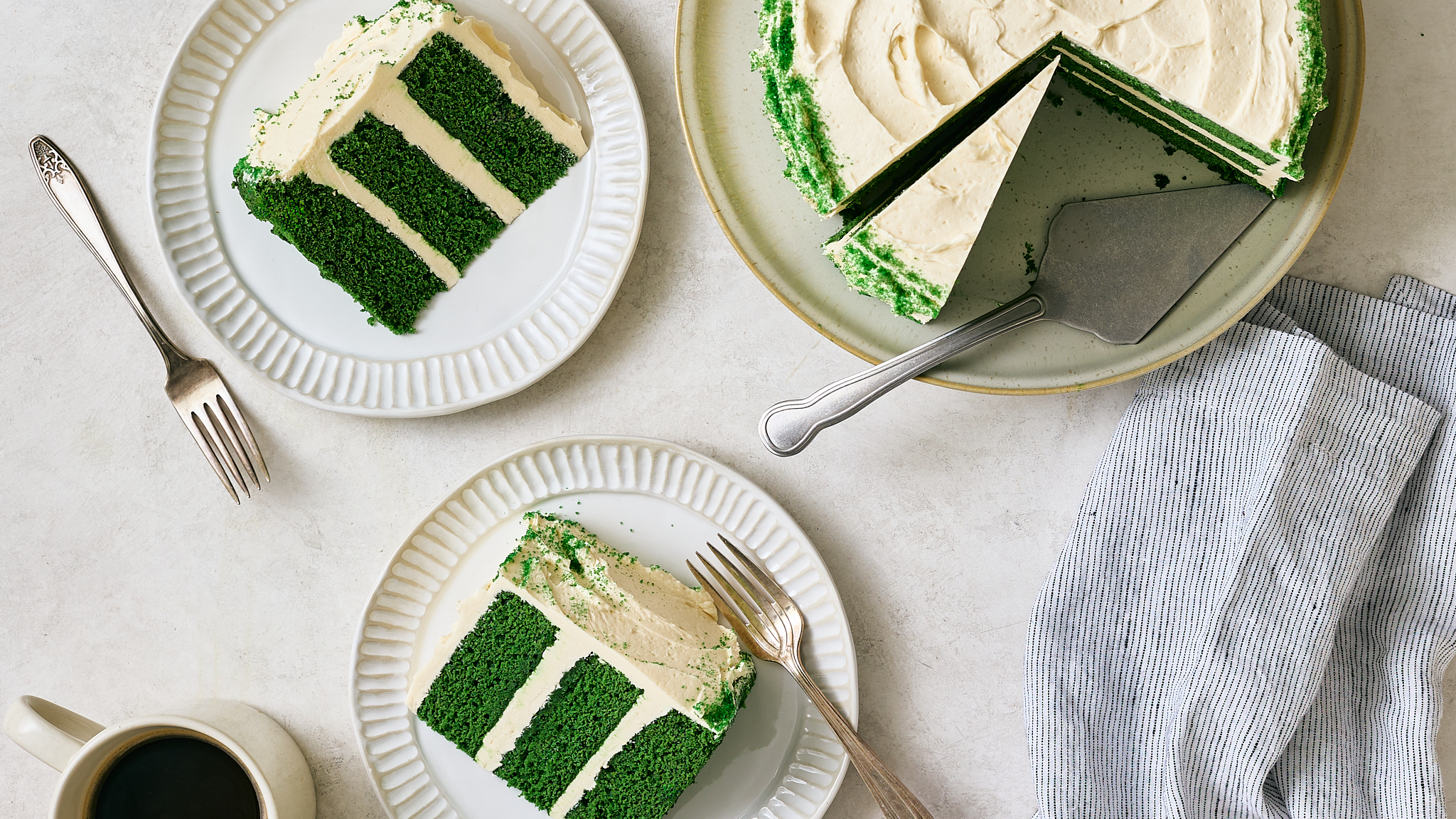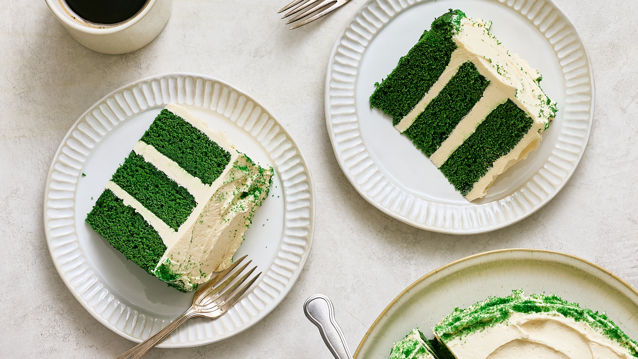 Are you feeling lucky? After a slice of St. Paddy's Cake you sure will be! This fun and festive cake is going green, from the inside out. You will certainly bring the party with this moist, chocolatey (yes, chocolatey) treat smothered in a white (or green if you really want to commit) vanilla frosting and sprinkled with some green-tinted sanding sugar. You won't even have to worry about wearing green, because St. Paddy's Cake has got you covered! Going green never tasted so good!