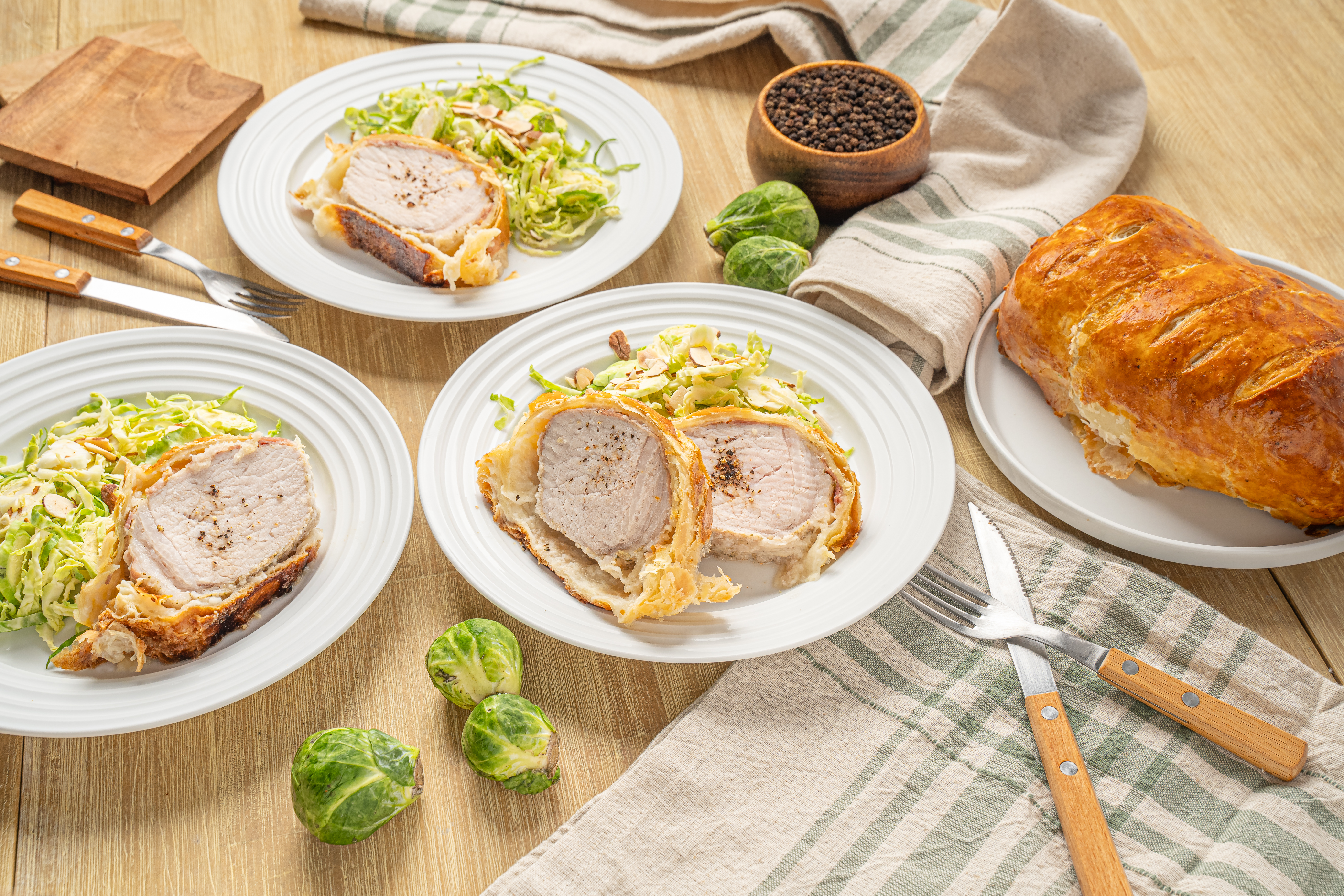 Take your dinner from drab to fabulous in just a few easy steps! Wrapped-In-Delight Tenderloins are an elegant addition to your holiday fare or any special occasion really. Puff pastry transforms two perfectly seasoned pork tenderloins into spectacular centerpieces when served with the fresh slaw for just the right crunch! Wrapped-In-Delight Tenderloins are an amazing way to elevate any gathering that your guests will be impressed with! That's a wrap on great taste that you can always smile about!